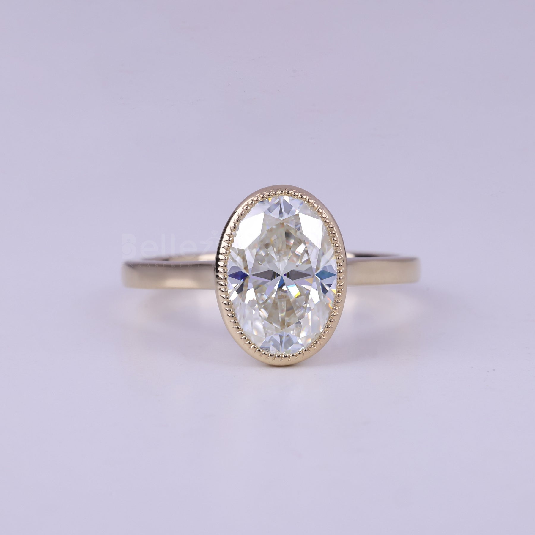 2.0CT Oval Cut Bezel Setting Moissanite Engagement Ring