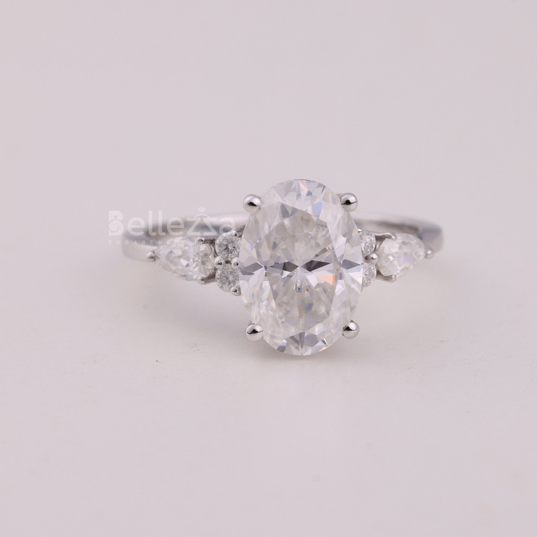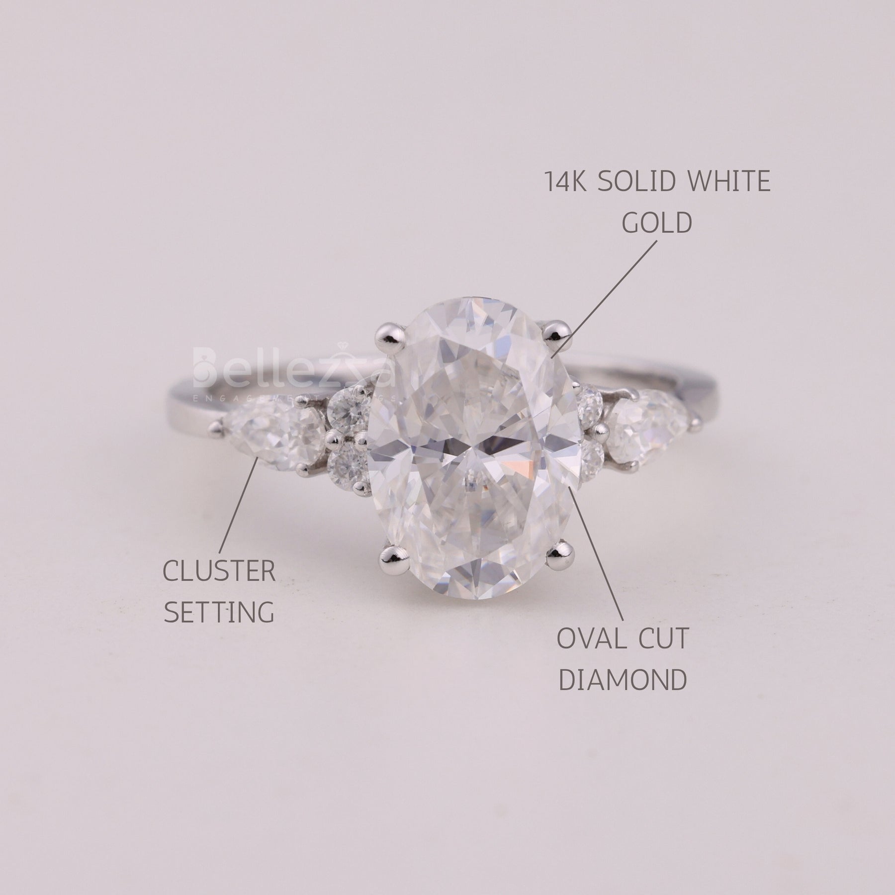 2.0CT Oval Cut Cluster Diamond Moissanite Engagement Ring