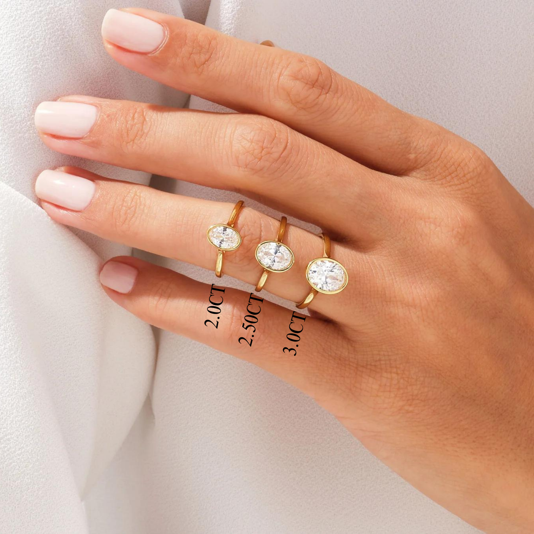 2.0CT Oval Diamond Bezel Setting Solitaire Moissanite Engagement Ring