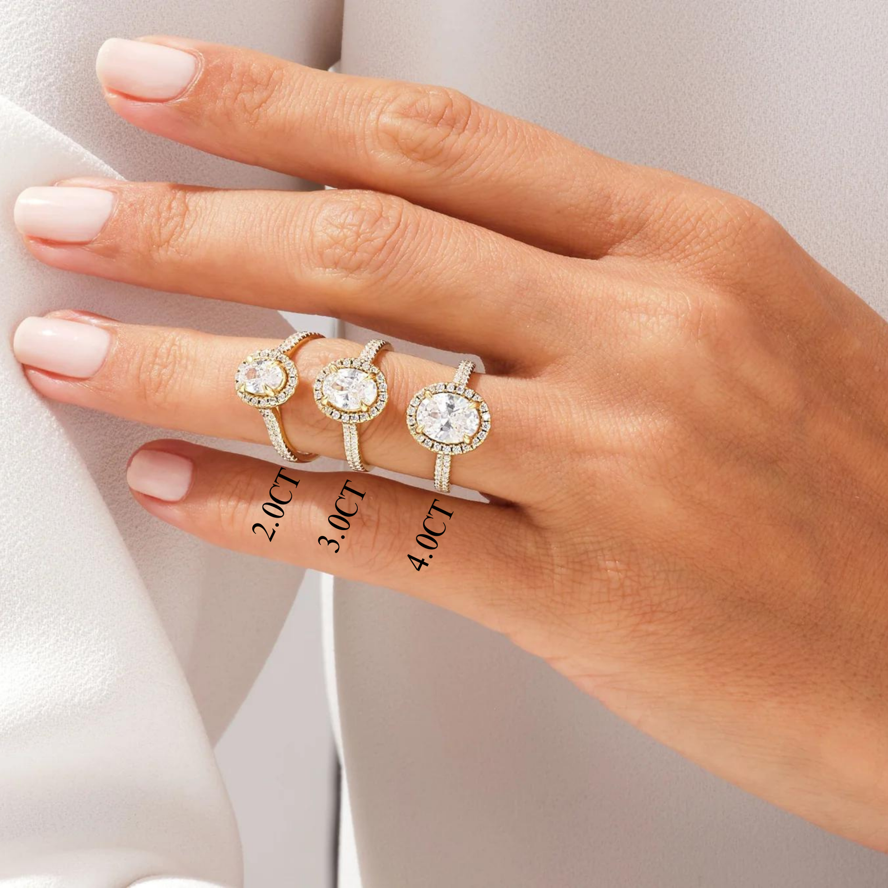 2.0CT Oval Diamond Double Shank Halo Moissanite Engagement Ring