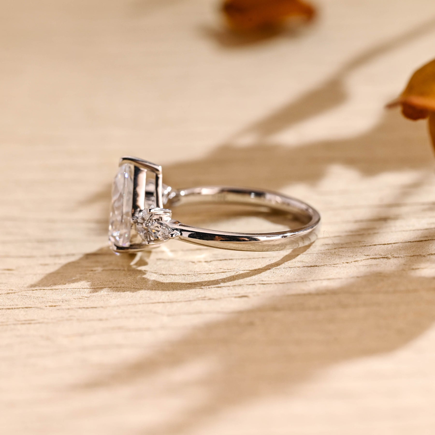 2.0CT Pear Cut Cluster Diamond Moissanite Engagement Ring