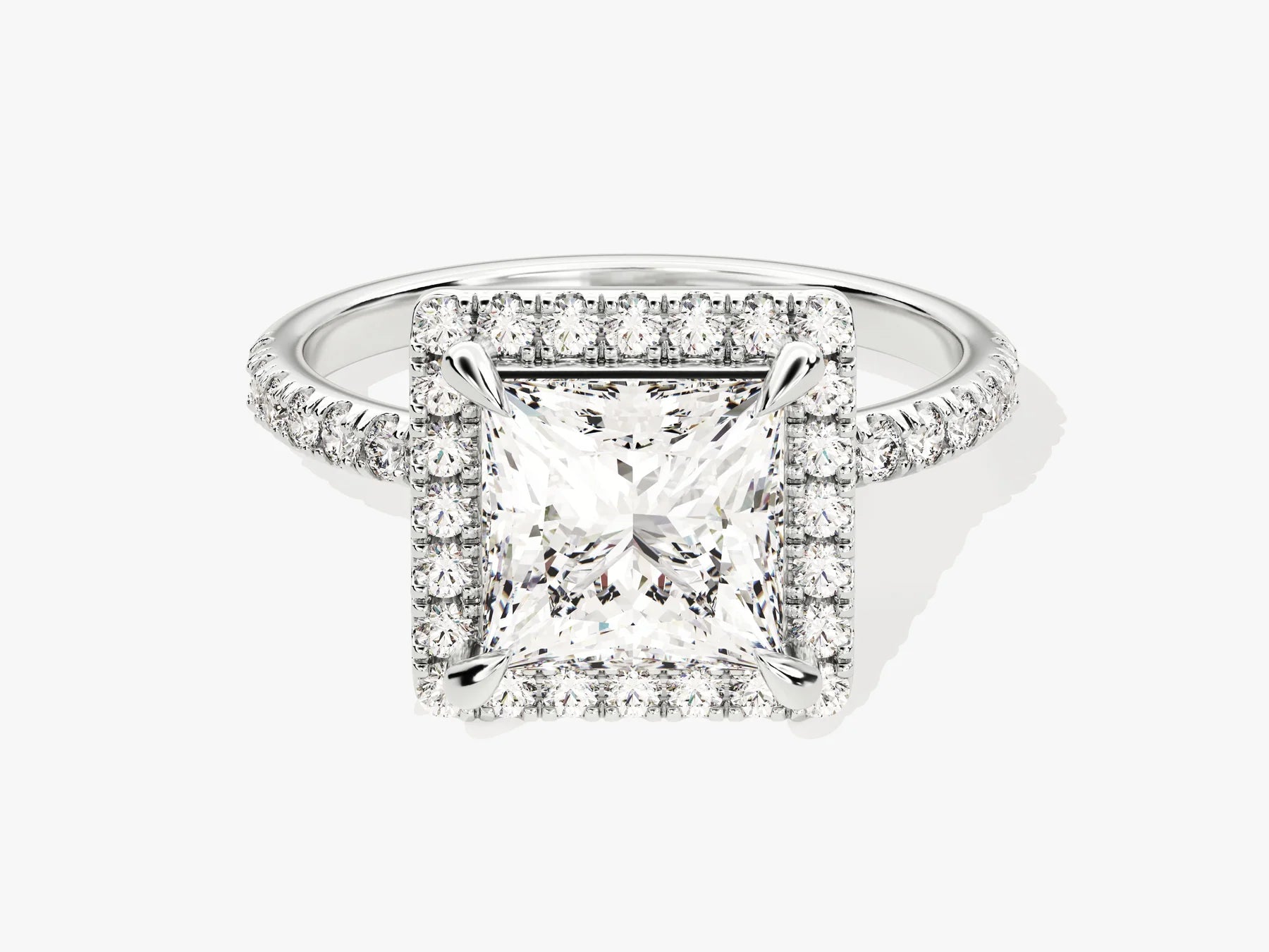 2.0CT Princess Diamond Halo Pave Setting Moissanite Engagement Ring