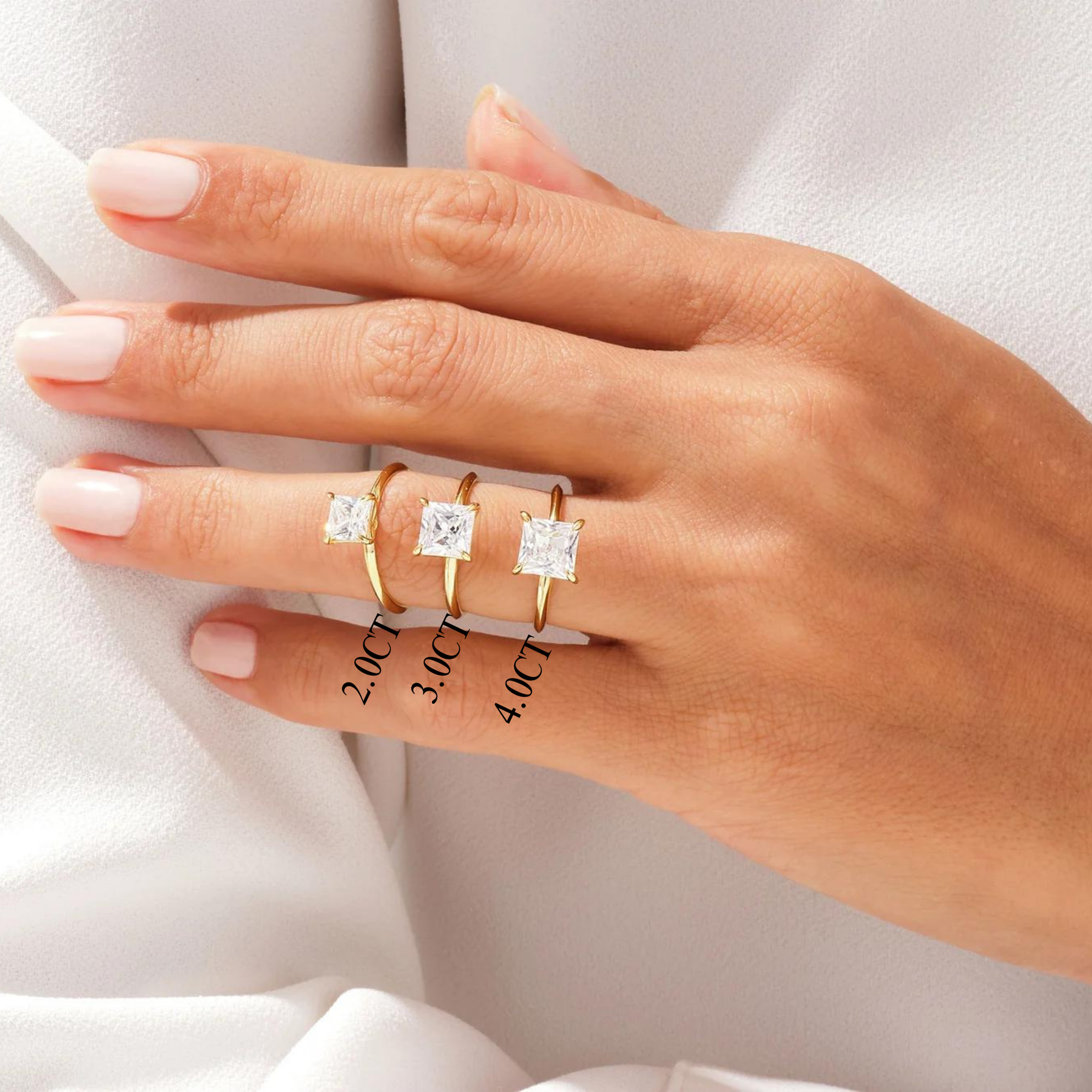 2.0CT Princess Diamond Kinfe Edge Solitaire Moissanite Engagement Ring