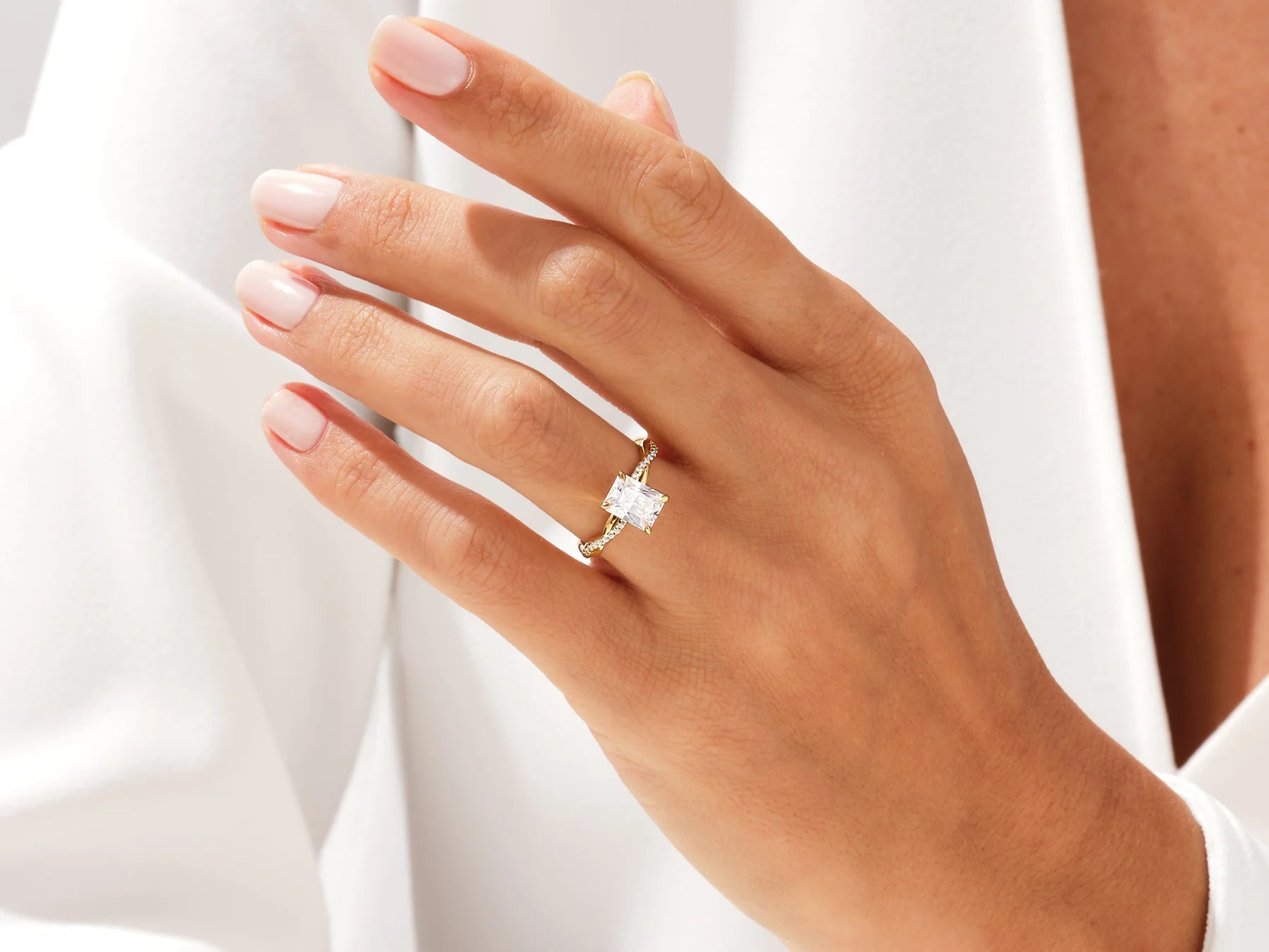 2.0CT Radiant Diamond Twisted Pave Setting Moissanite Engagement Ring