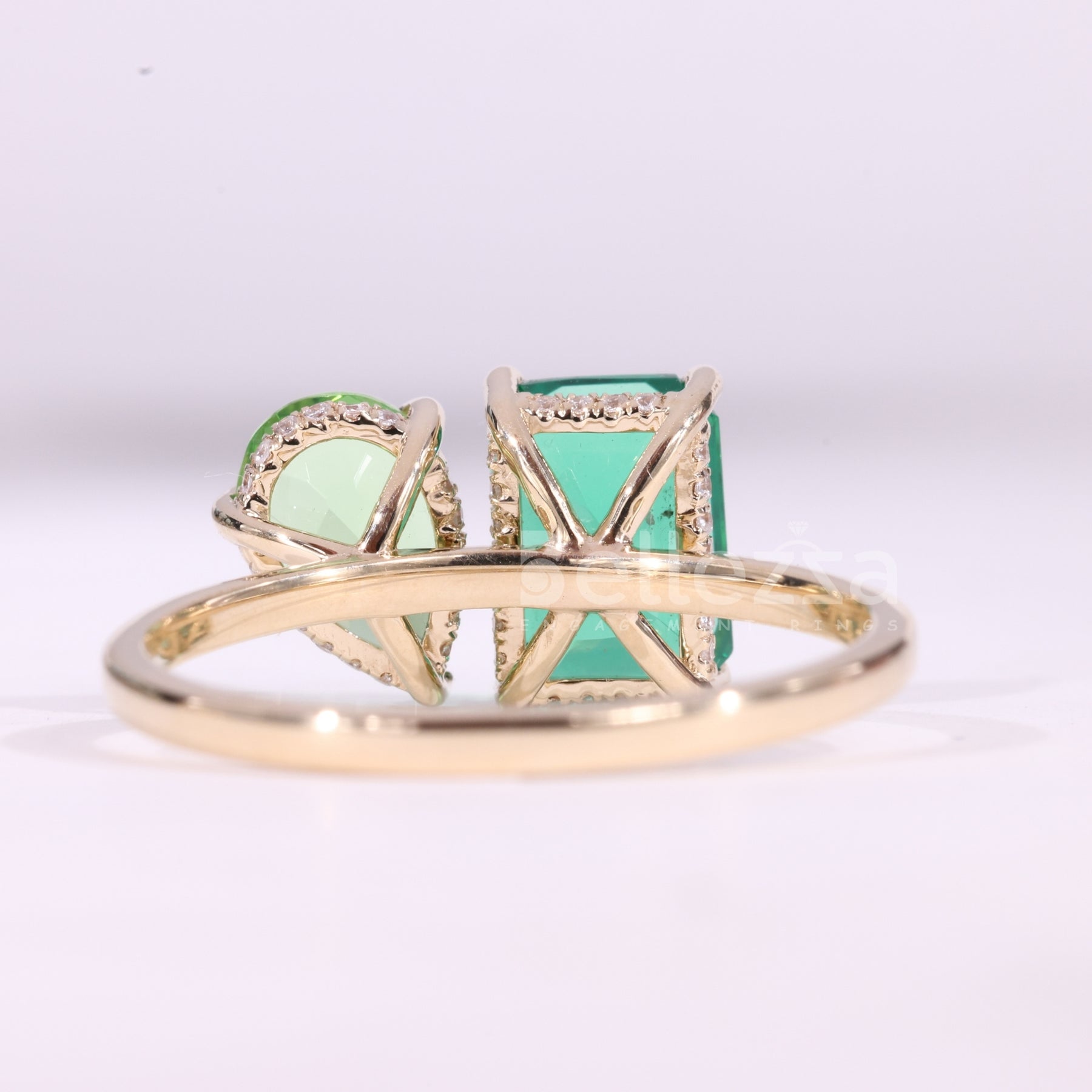 2.0CTW Emerald & Pear Cut Green Gemstone Toi Et Moi Engagement Ring