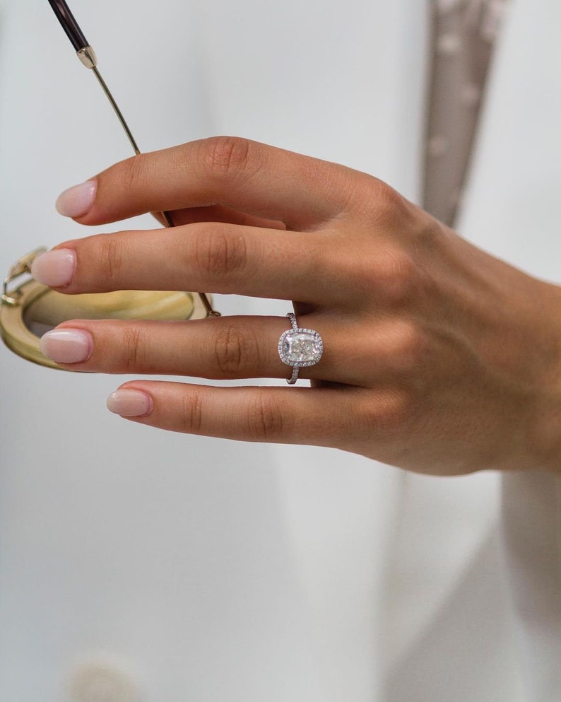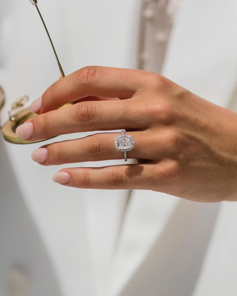 2.40ct Cushion Cut Pave Moissanite Diamond Halo Engagement Ring