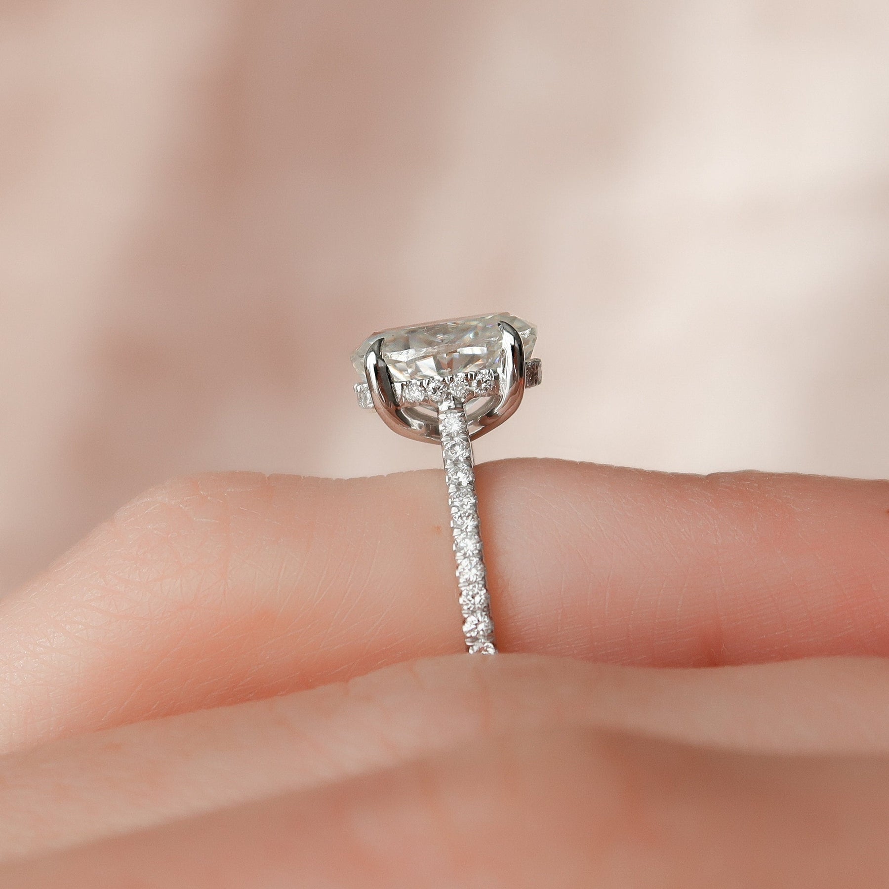 2.0CT Oval Cut Hidden Halo Moissanite Engagement Ring