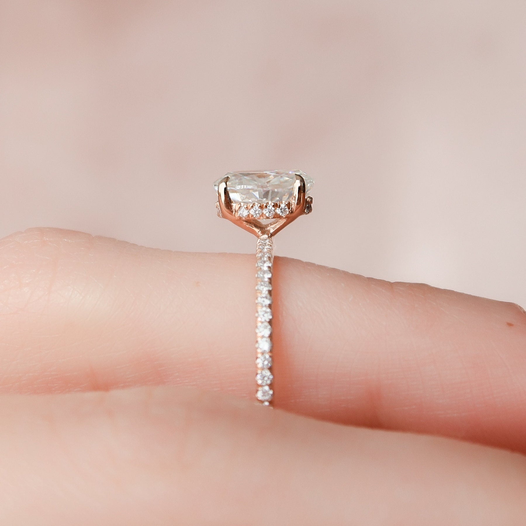 1.0CT Oval Cut Moissanite Hidden Halo Diamond Engagement Ring
