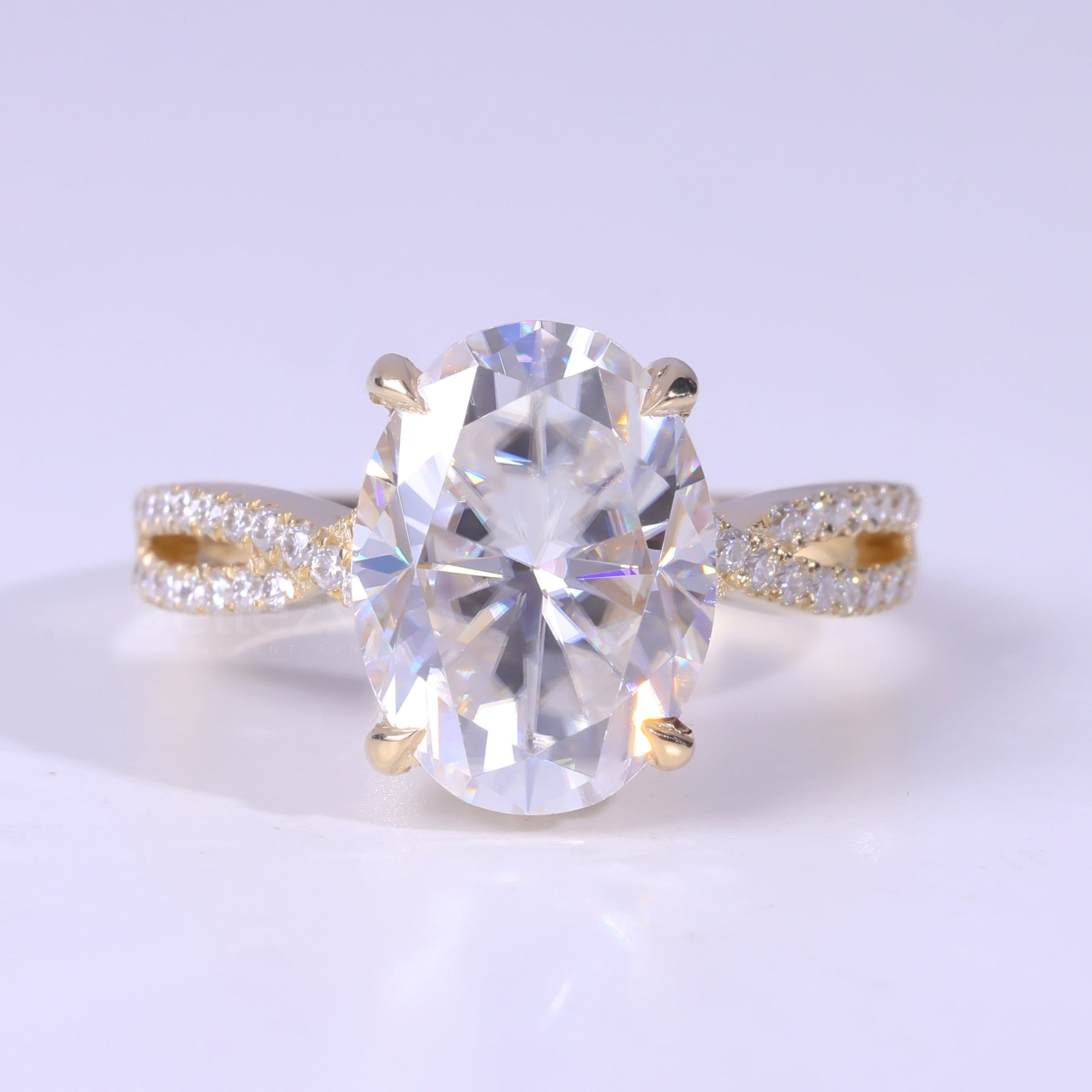 2.50CT-3.50CT Oval Cut Twisted Pave Setting Moissanite Engagement Ring