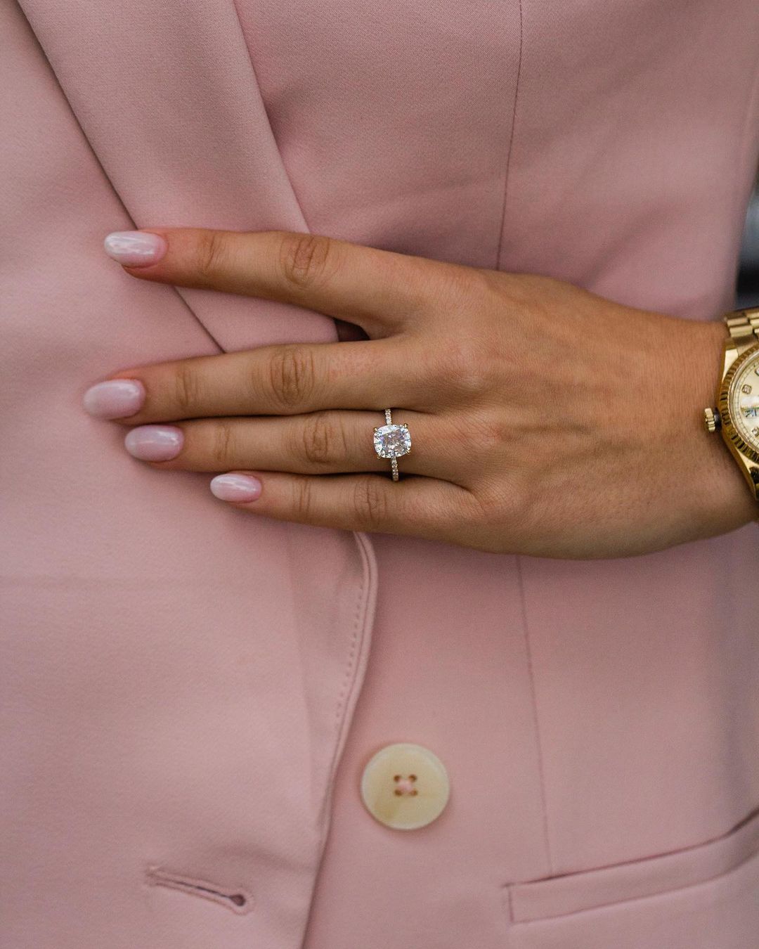 ✥ The Ring Shown in the Picture Holds a Beautiful 2.80 CT Cushion Cut Moissanite.