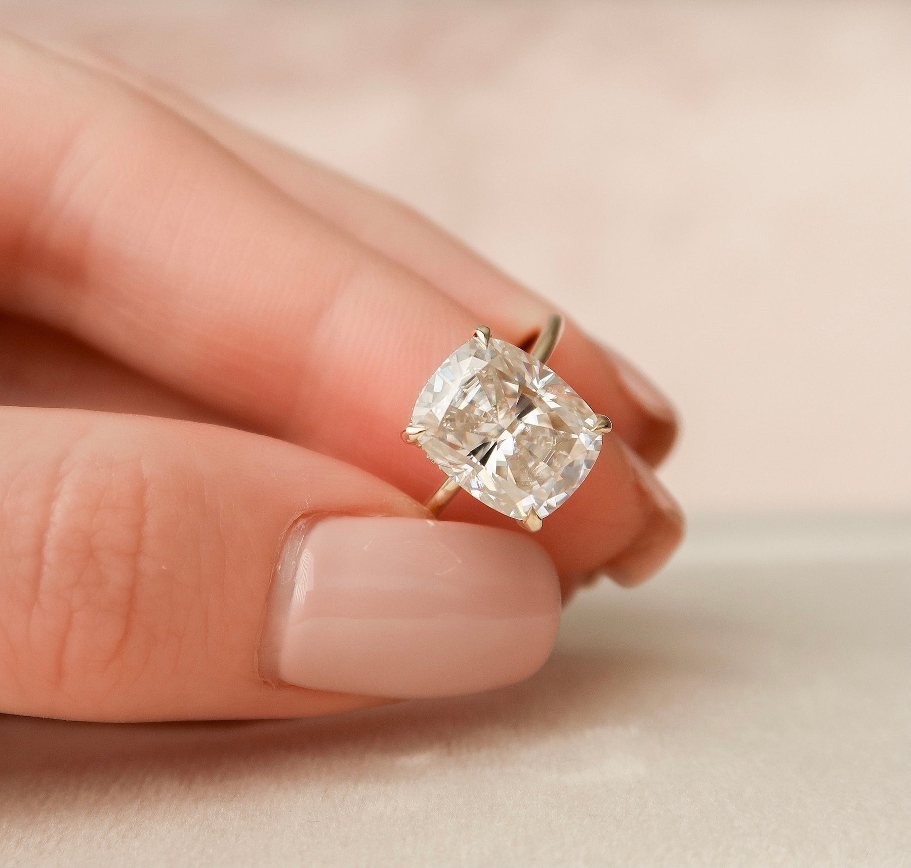 6.0CT Elongated Cushion Cut Hidden Halo Moissanite Diamond Engagement Ring