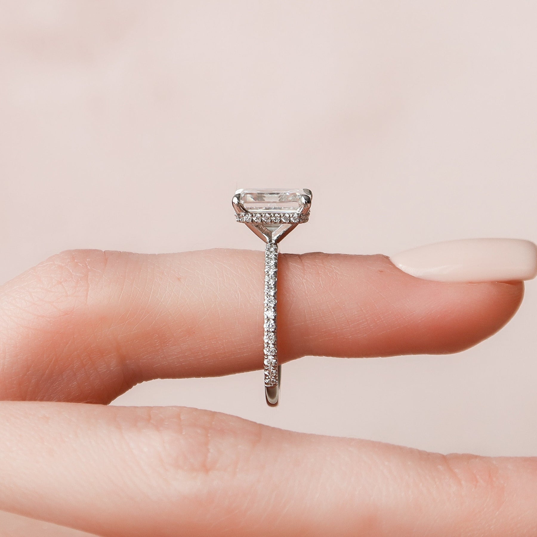 2.50CT Emerald Cut Hidden Halo Moissanite Diamond Pave Engagement Ring