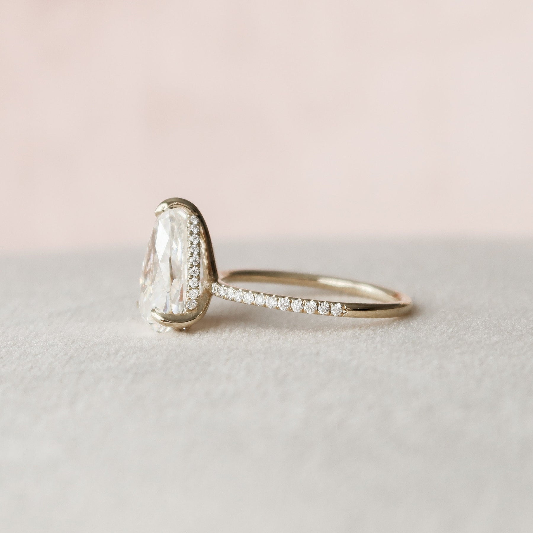 2.50CT Pear Cut Hidden Halo Moissanite Diamond Pave Engagement Ring