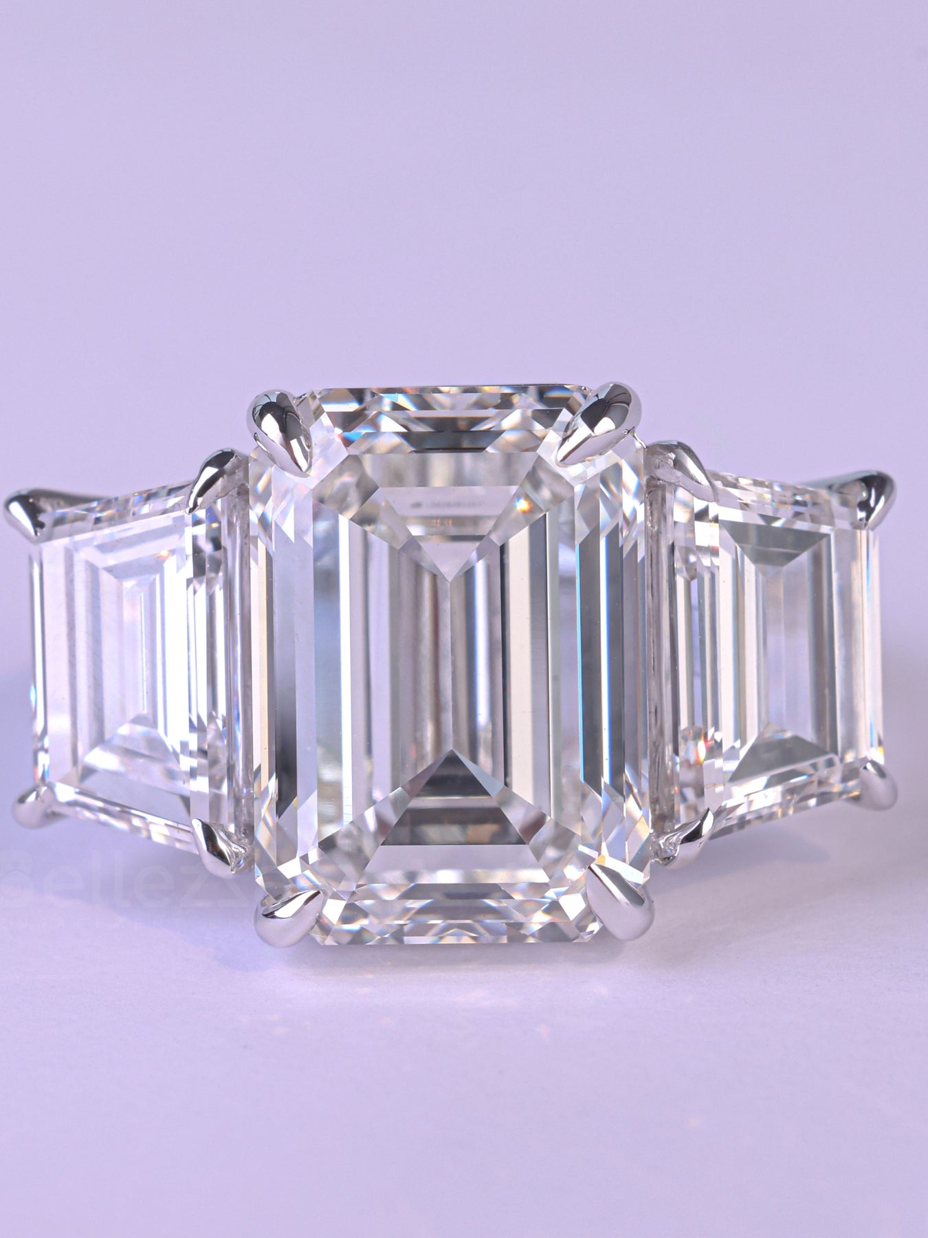 3.0CT Emerald Cut Three Stone Moissanite Engagement Ring