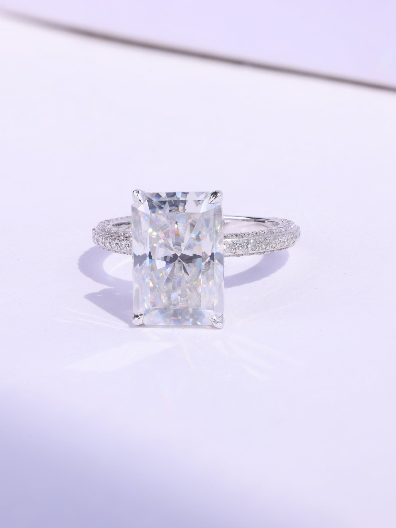 3.0CT Radiant Cut Three Side Pave Setting Moissanite Engagement Ring