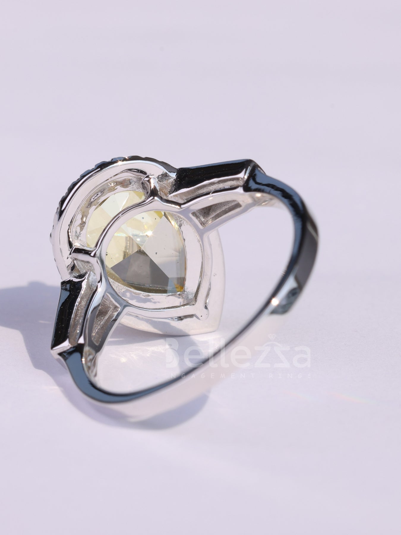 4.0CT Yellow Pear Cut Halo Set Three Stone Moissanite Engagement Ring
