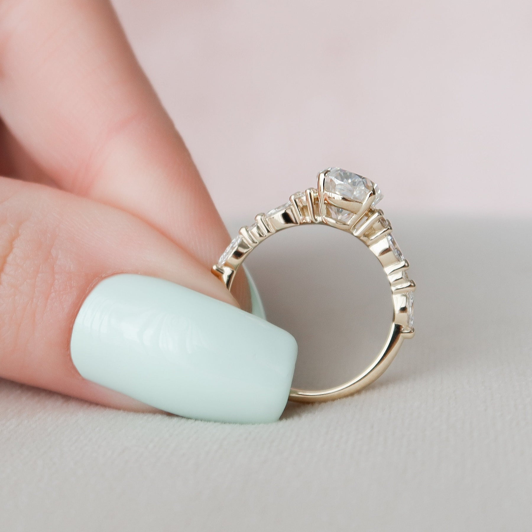 2.0CT Oval Cut Moissanite Cluster Engagement Ring