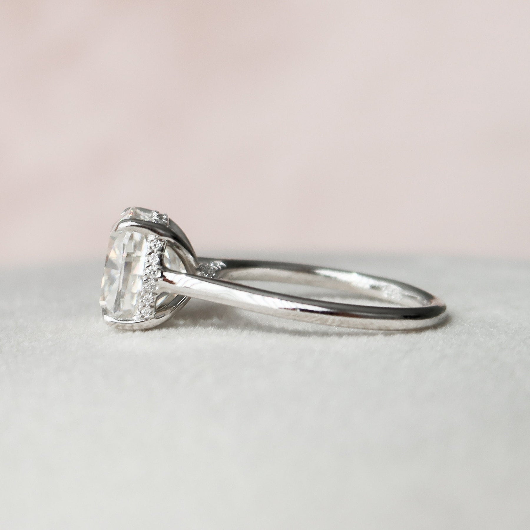 4.0CT Cushion Cut Moissanite Hidden Halo Engagement Ring