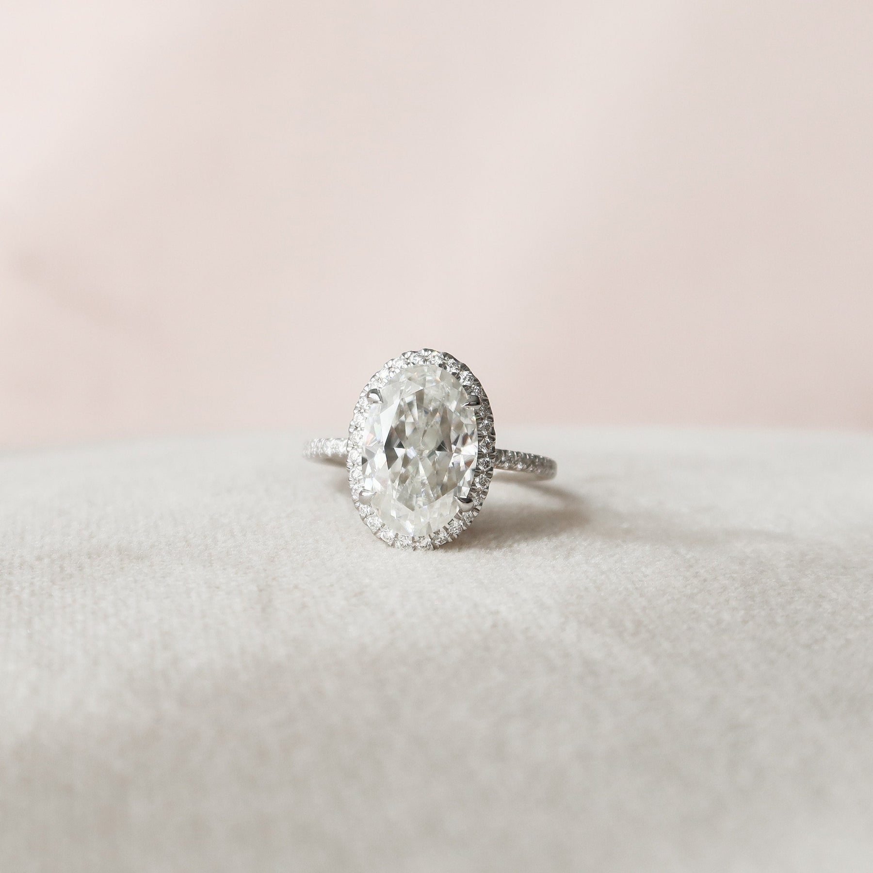 3.50CT Elongated Oval Cut Halo Moissanite Diamond Pave Engagement Ring