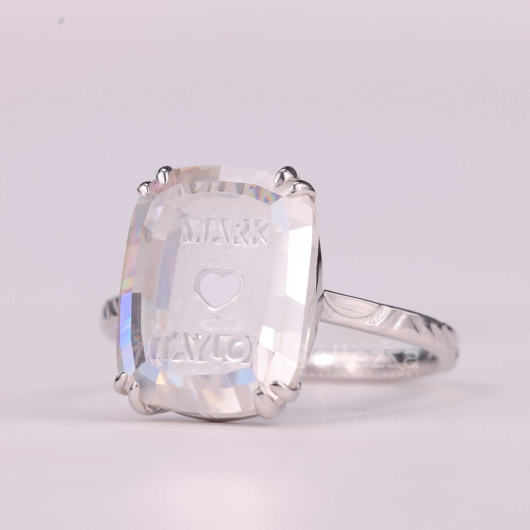 5.0CT Elongated Cushion Cut Unique Engraved Solitaire Engagement Ring
