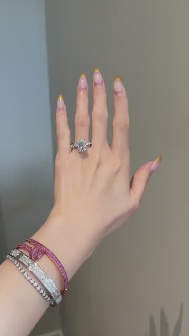 5CT Elongated Cushion Cut Hidden Halo Moissanite Diamond Engagement Ring