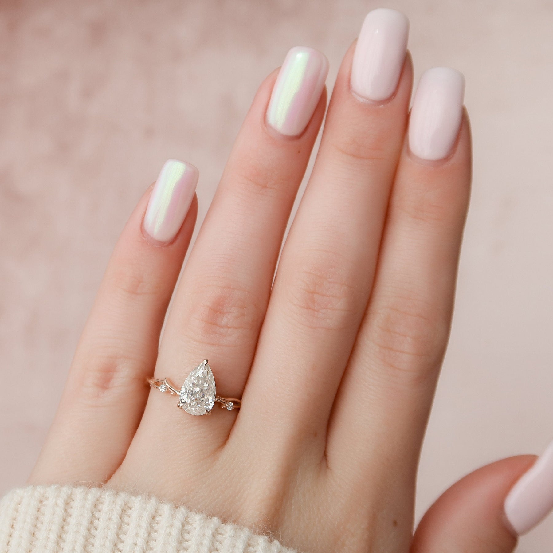1.5 CT Pear Shaped Nature Inspired Twig Diamond Engagement Ring