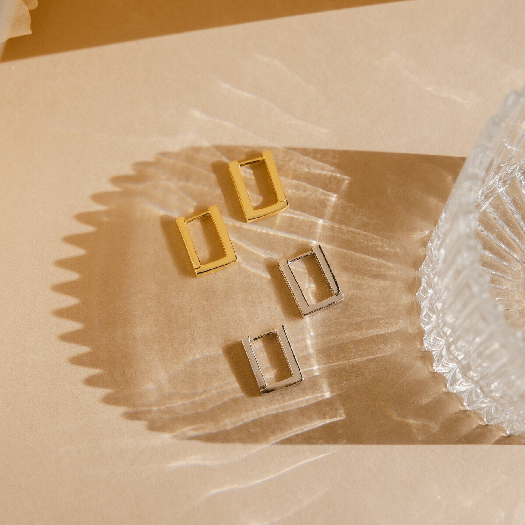 Rectangle Link Moissanite Diamond Earrings in Yellow Gold