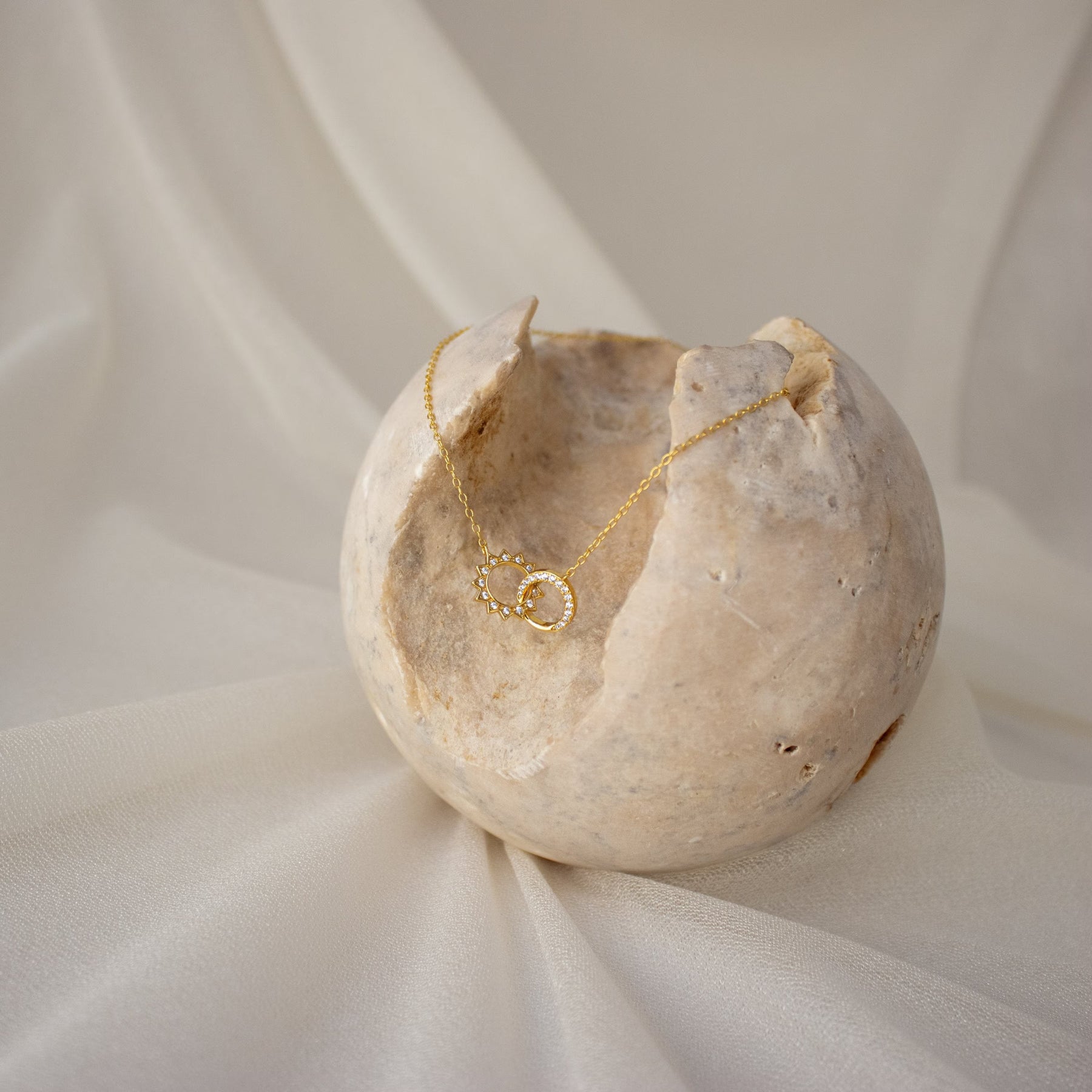 Sun & Moon Moissanite Diamond Eternity Necklace in Solid Gold