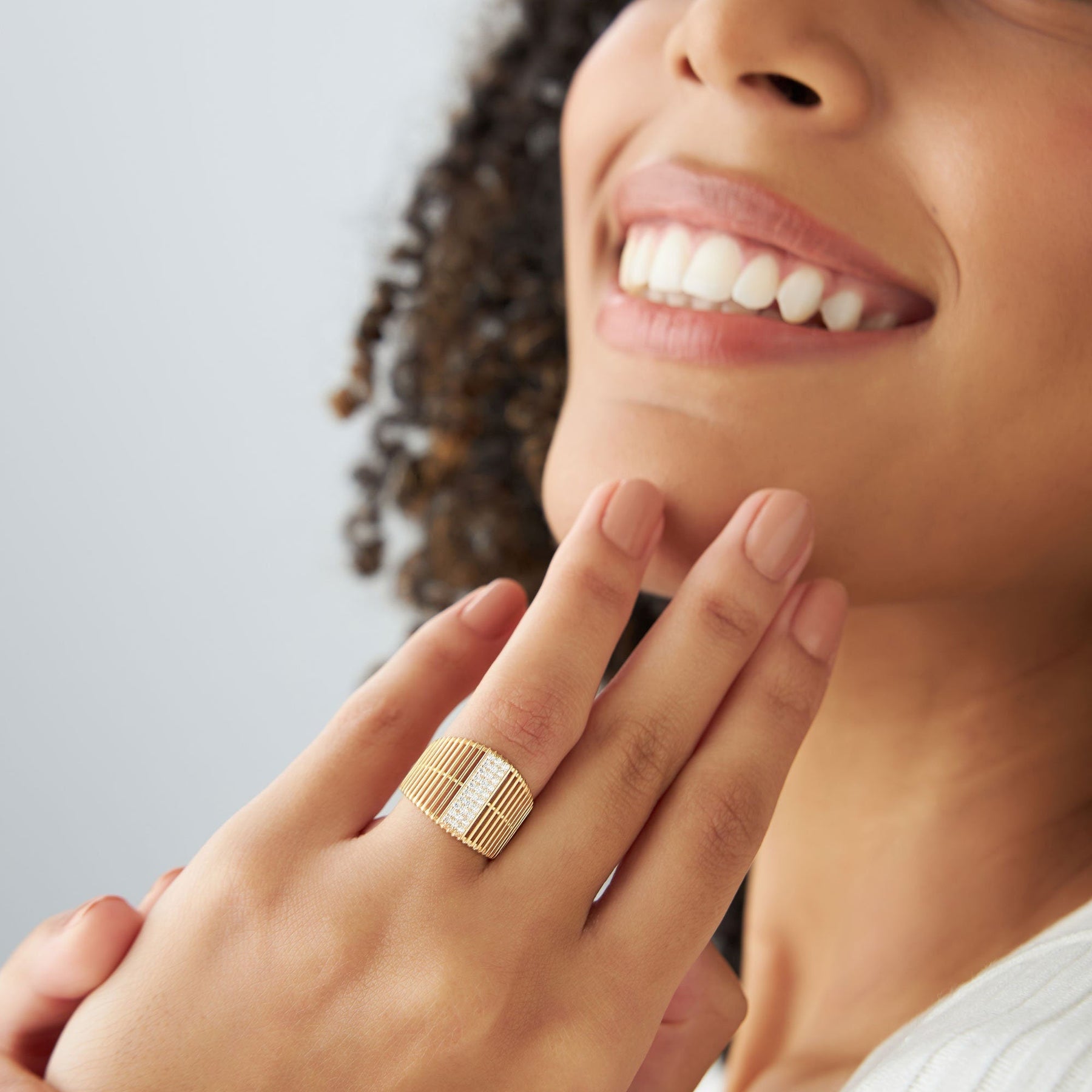 Pave Diamond Ribbed Stacking Band Gift for Women
