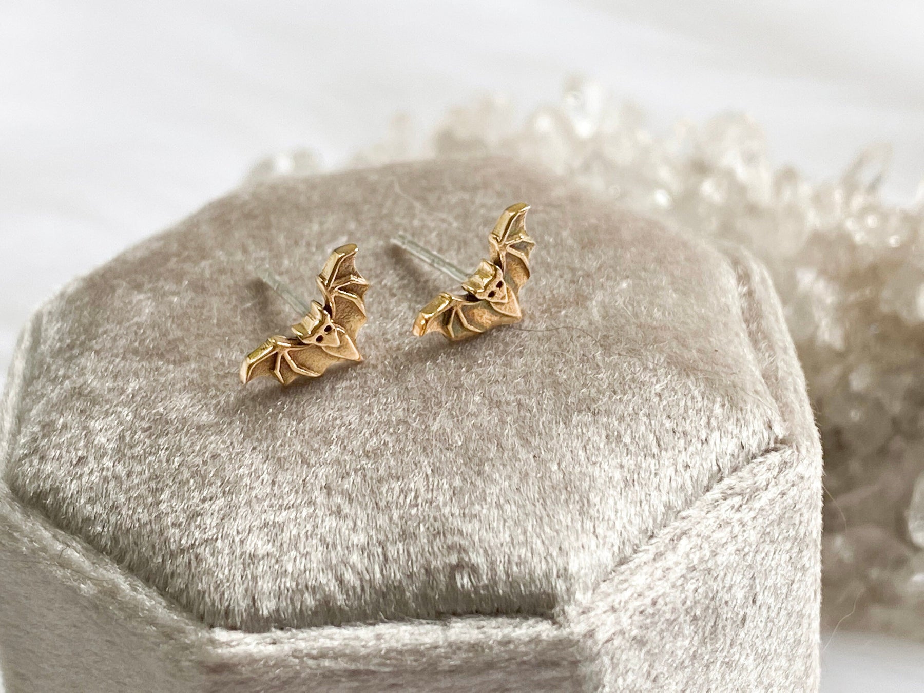 ✥ With their humorous appeal and hint of luxury, these 14K solid gold bat stud earrings are the ideal Halloween present. These earrings, which are elegantly designed to reflect the eerie atmosphere of Halloween, are made from premium 14K solid gold and have a fun bat pattern. Their chic and adaptable style gives them a distinctive touch to every ensemble and making them ideal for everyday use as well as celebratory occasions. These bat stud earrings are a unique and captivating gift that will be treasured long after the holiday season. They are perfect for Halloween celebrations or as a unique Christmas surprise for someone who enjoys unique jewelry.