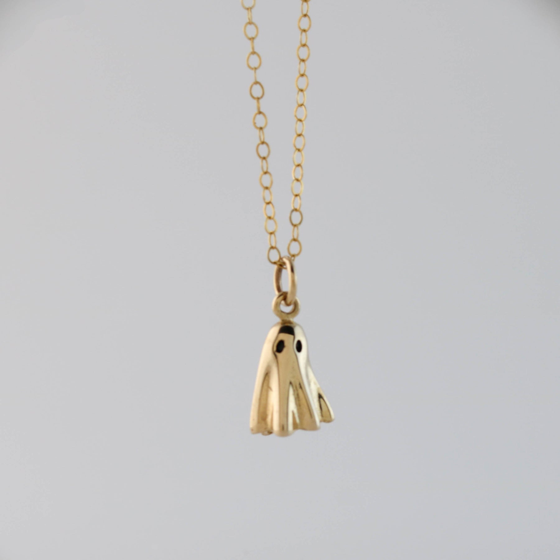 14K Solid Gold Ghost Pendant Necklace for Halloween Gift