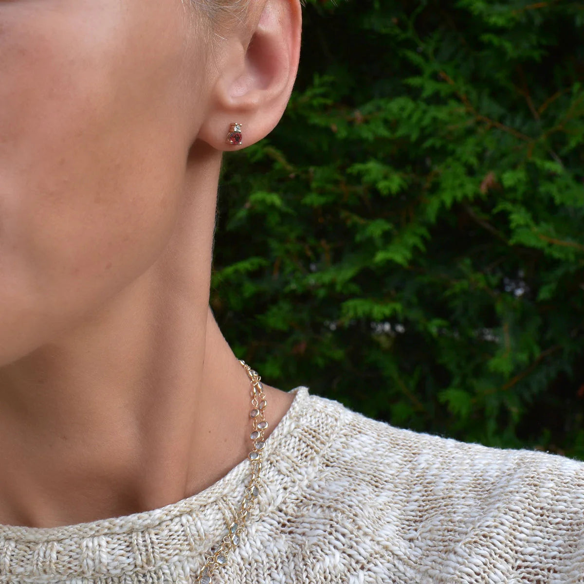 0.80TCW Round Cut Garnet Moissanite Diamond January Birthstone Earrings