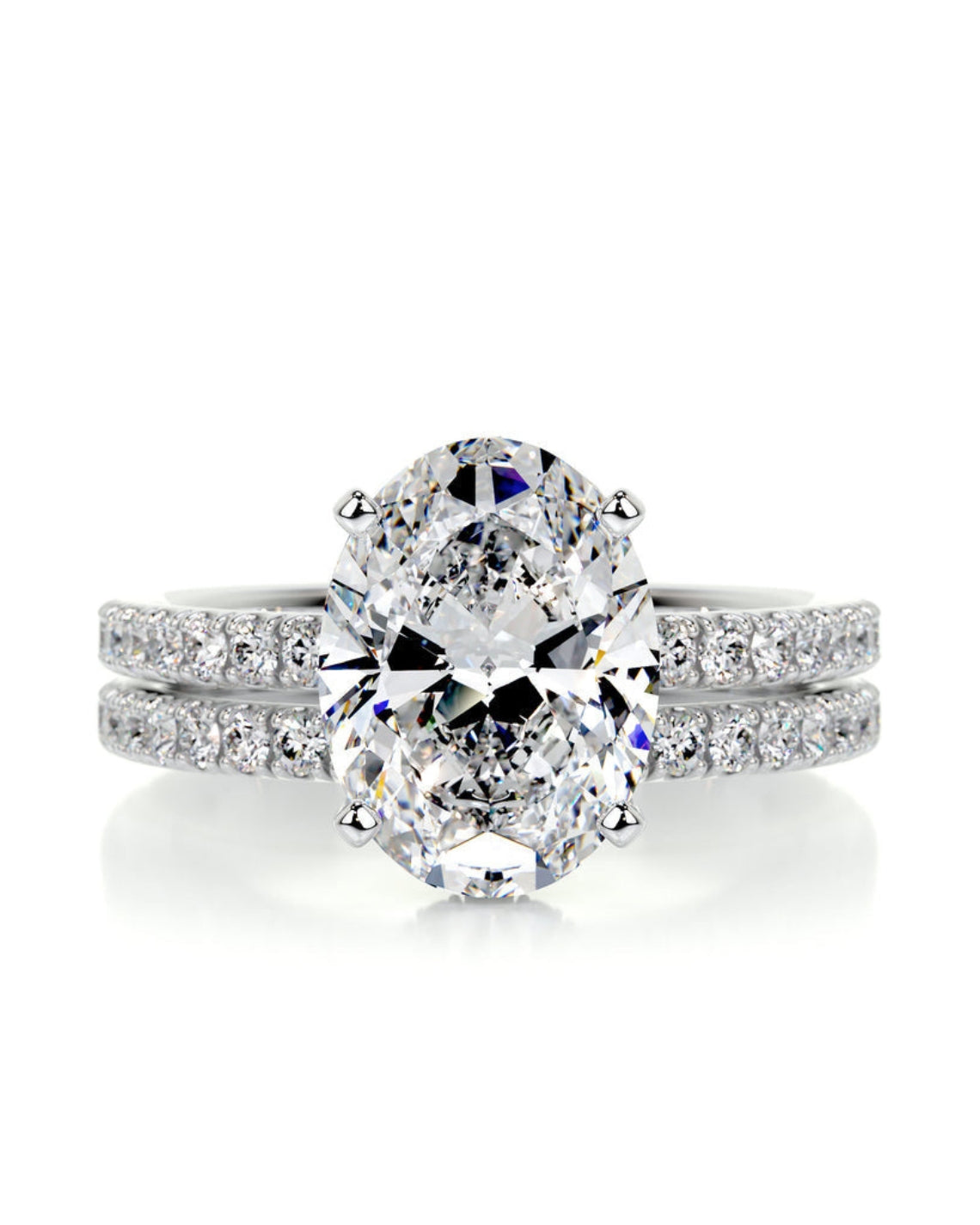 3.0 CT Oval Hidden Halo & Pave F-VS Loose Diamond Bridal Set