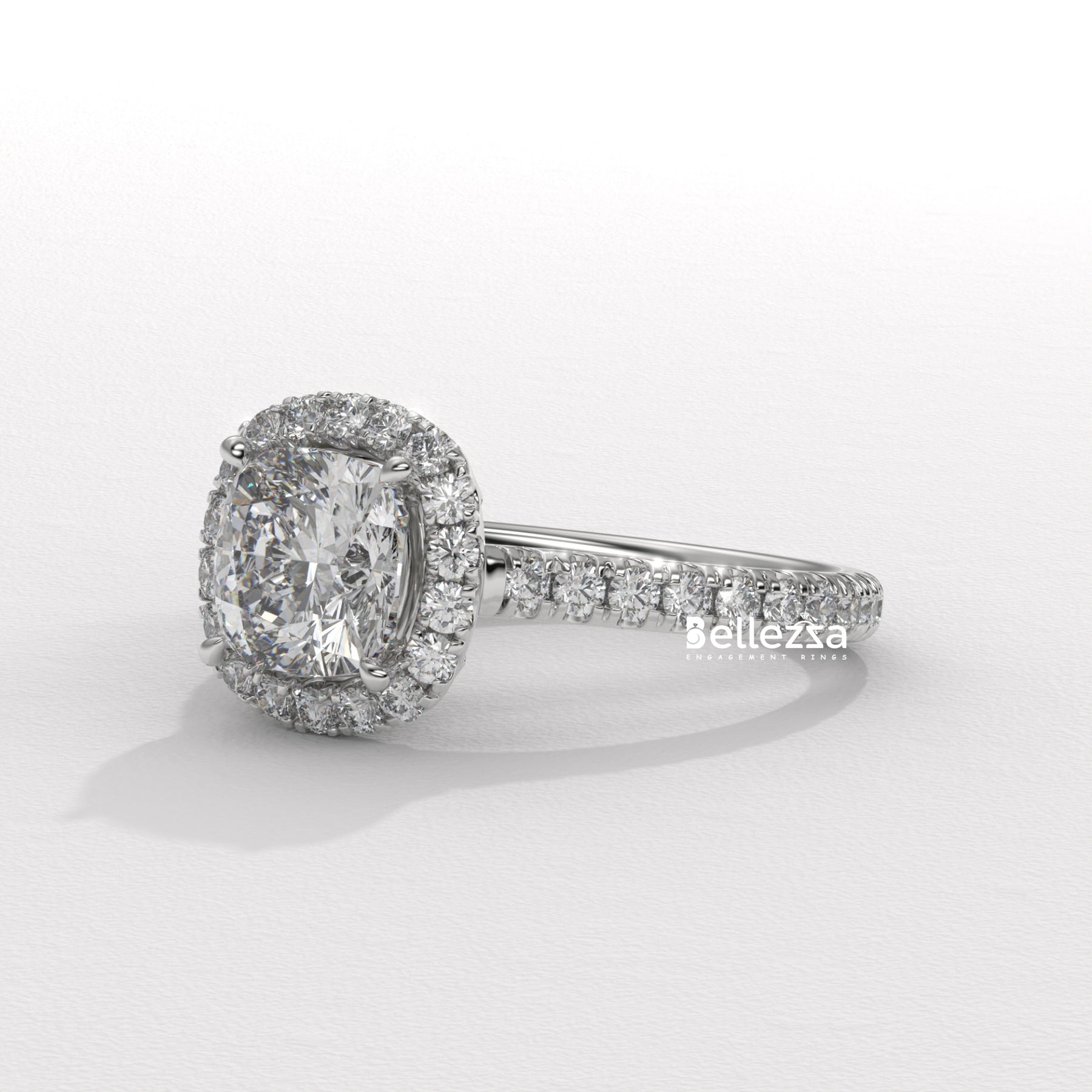 1.0-2.0CT Cushion Cut CVD Diamond Halo Pave Setting Engagement Ring