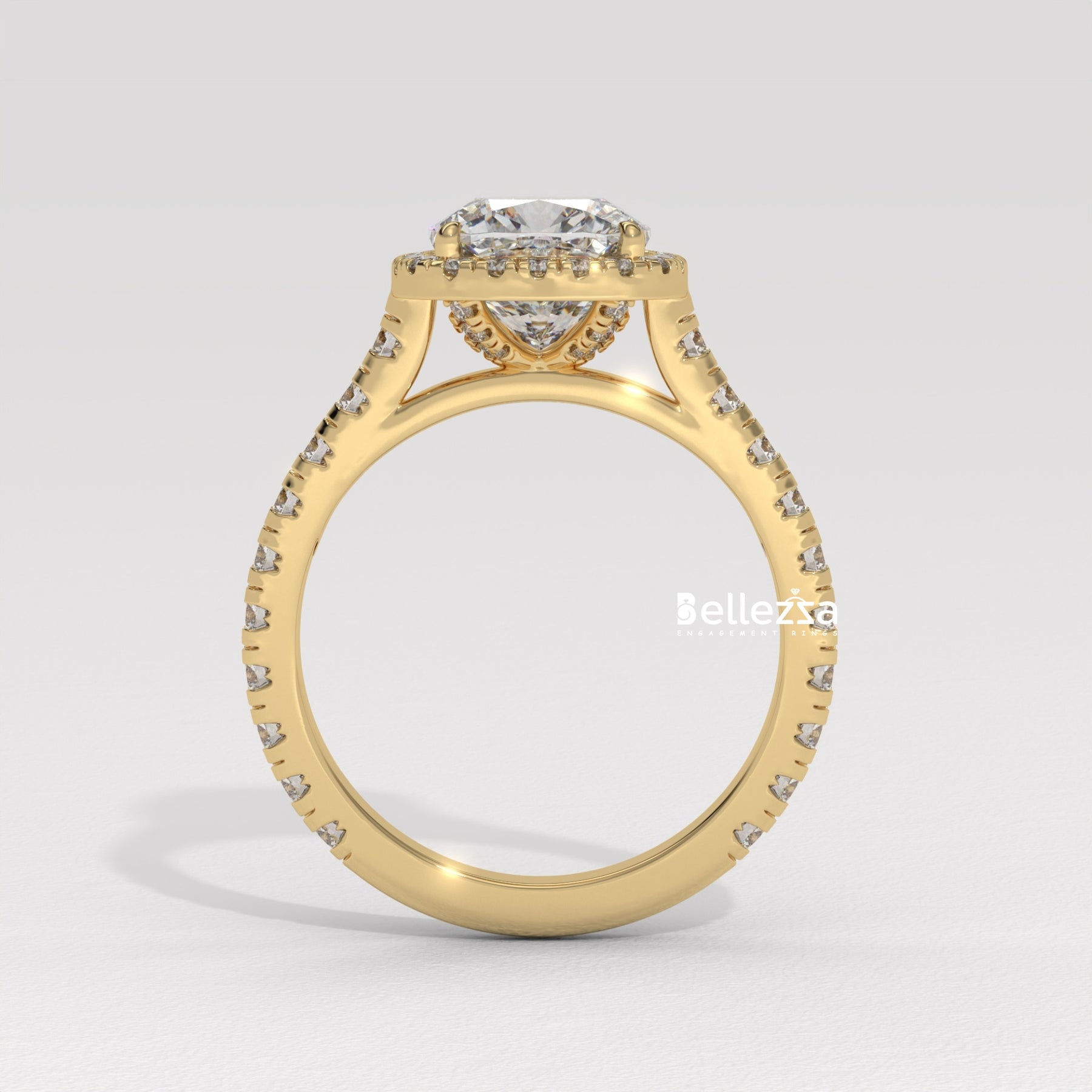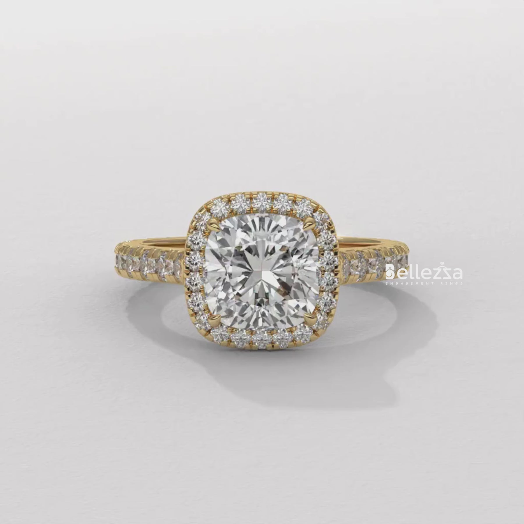 1.0-2.0CT Cushion Cut Halo Pave Setting CVD Diamond Engagement Ring