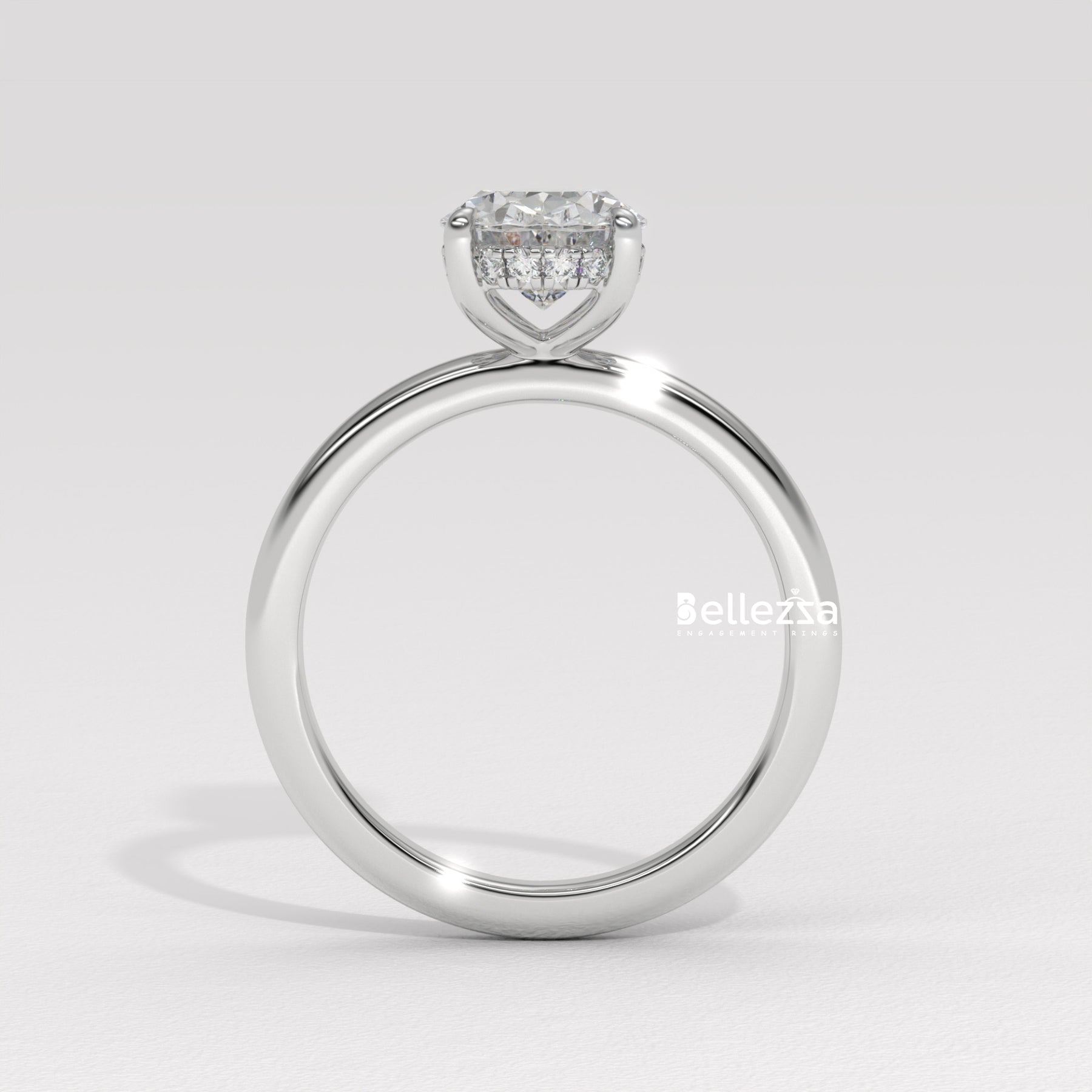 1.0-2.0CT Oval Cut Hidden Halo Lab Grown Engagement Ring