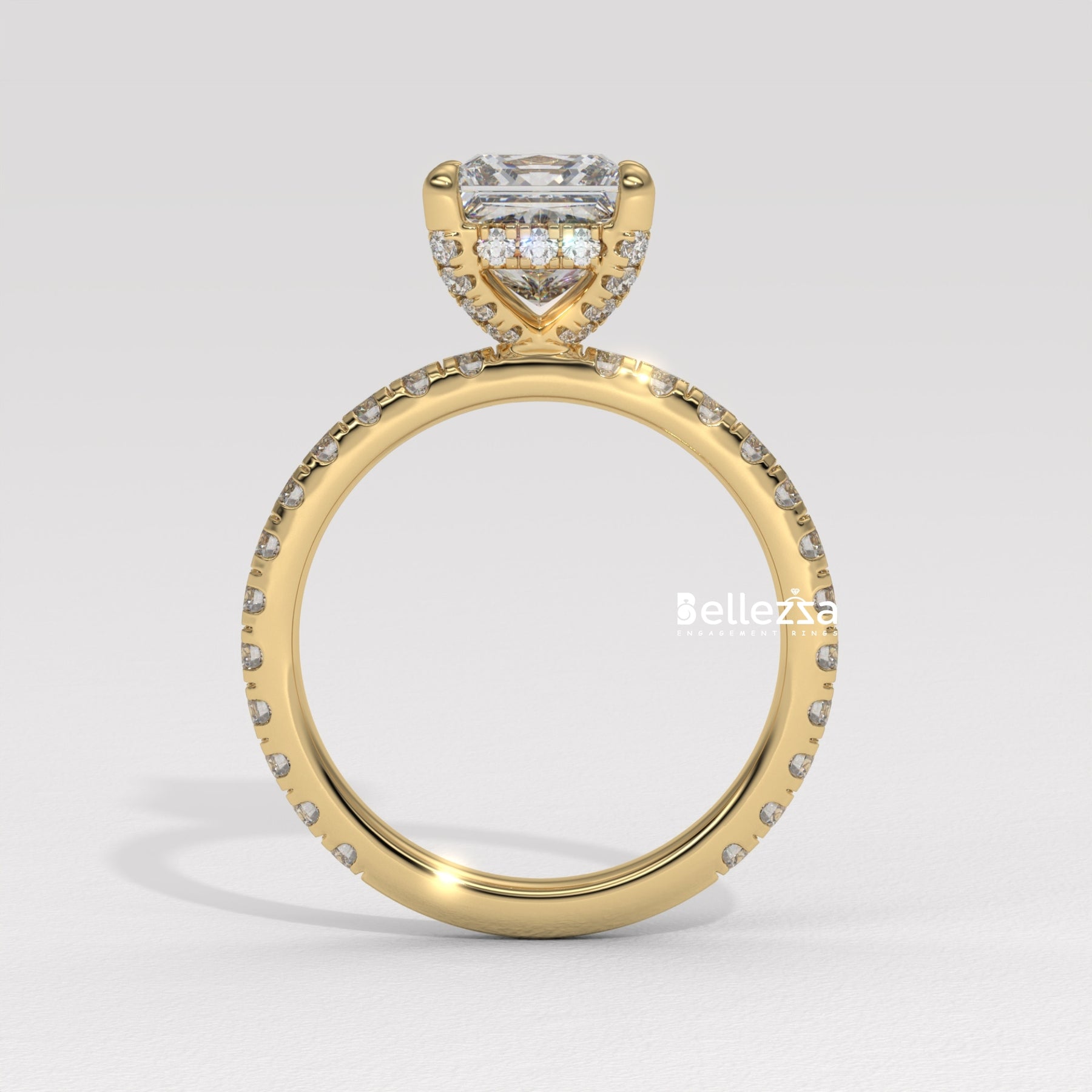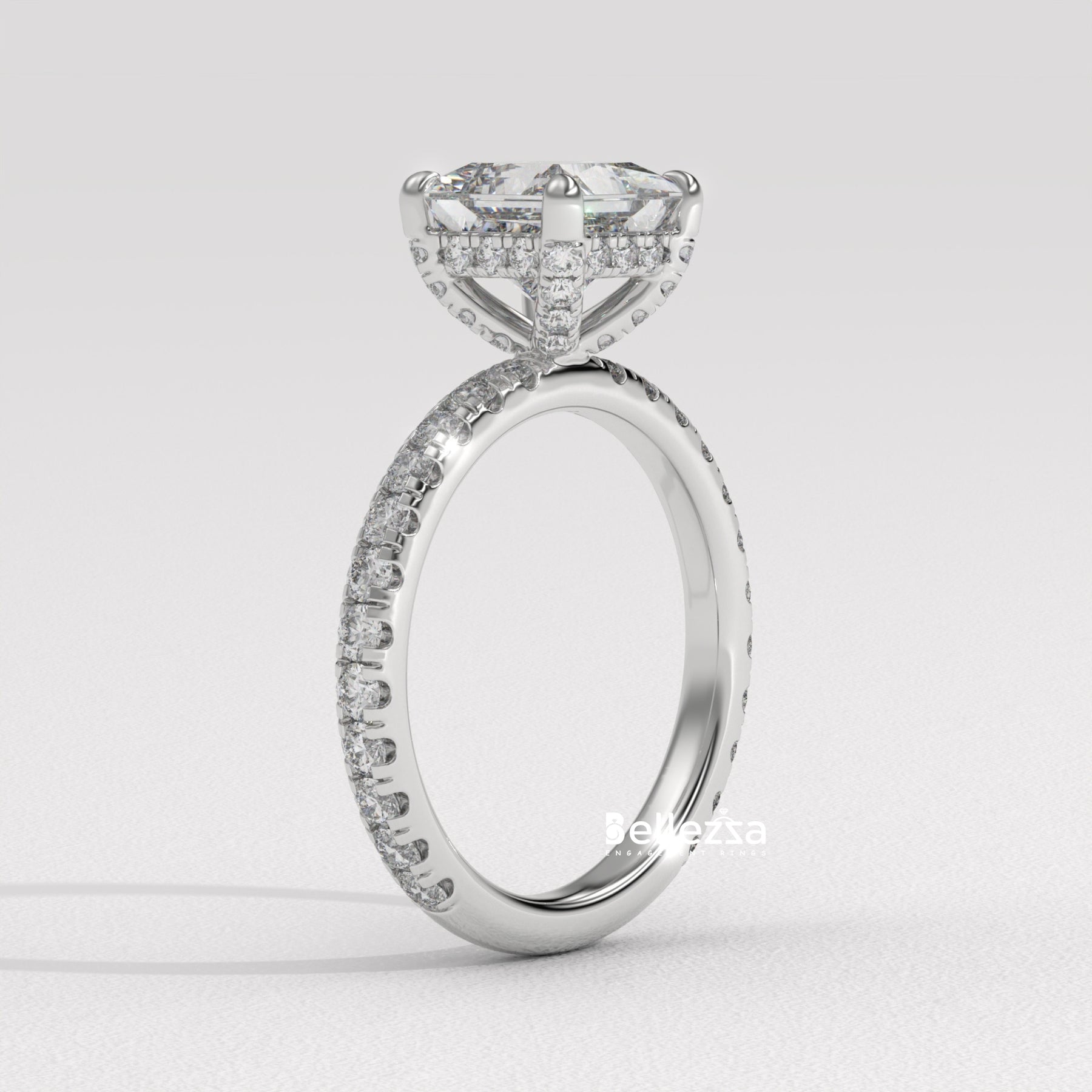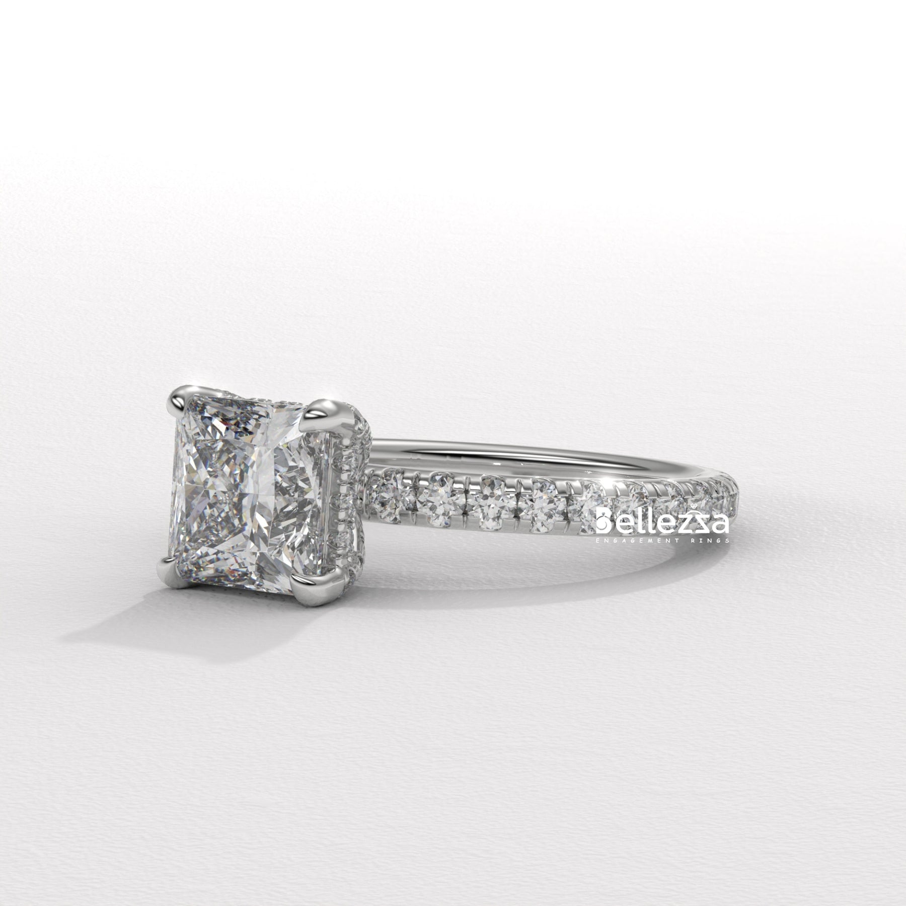 1.0-2.0CT Princess Cut CVD Diamond Pave Setting Engagement Ring