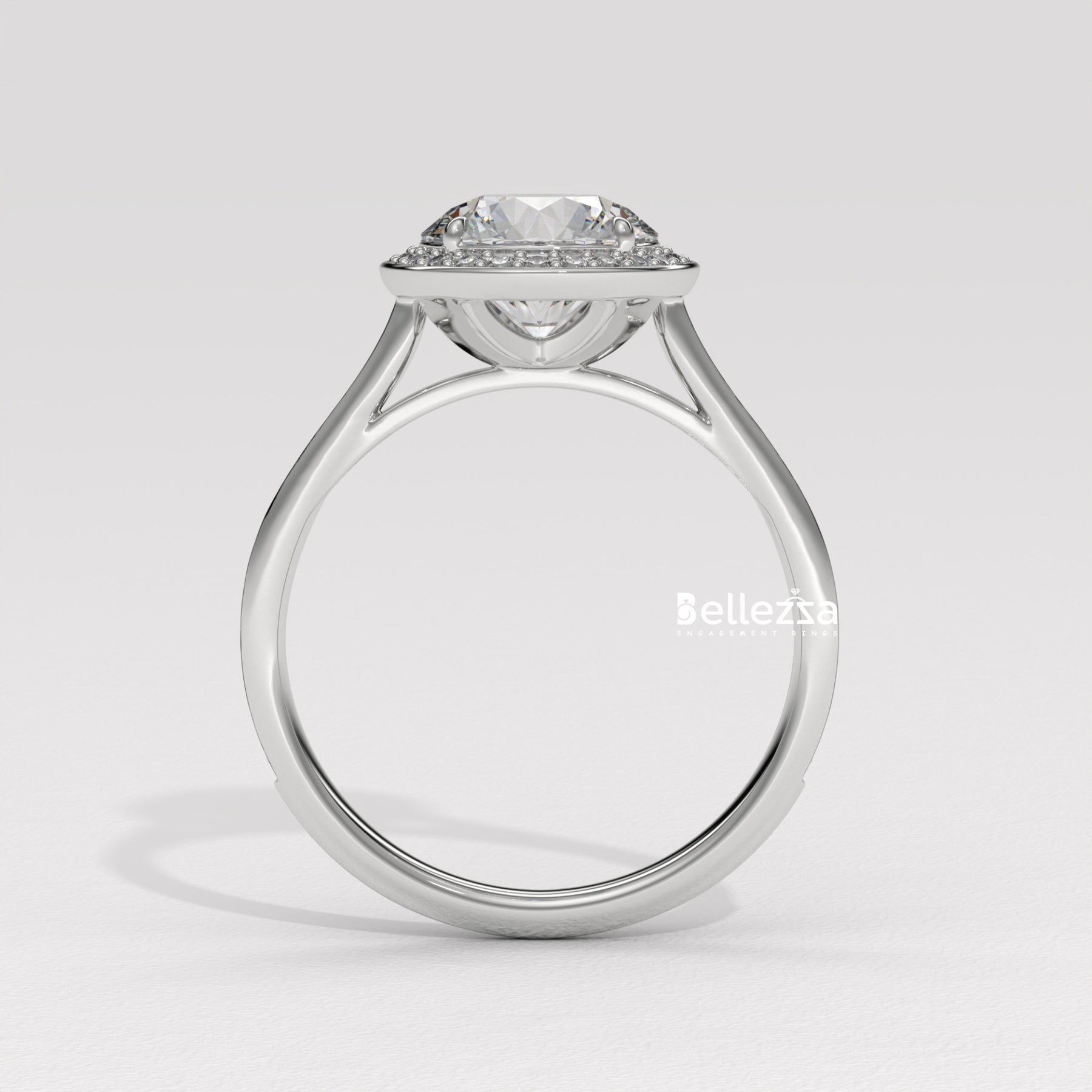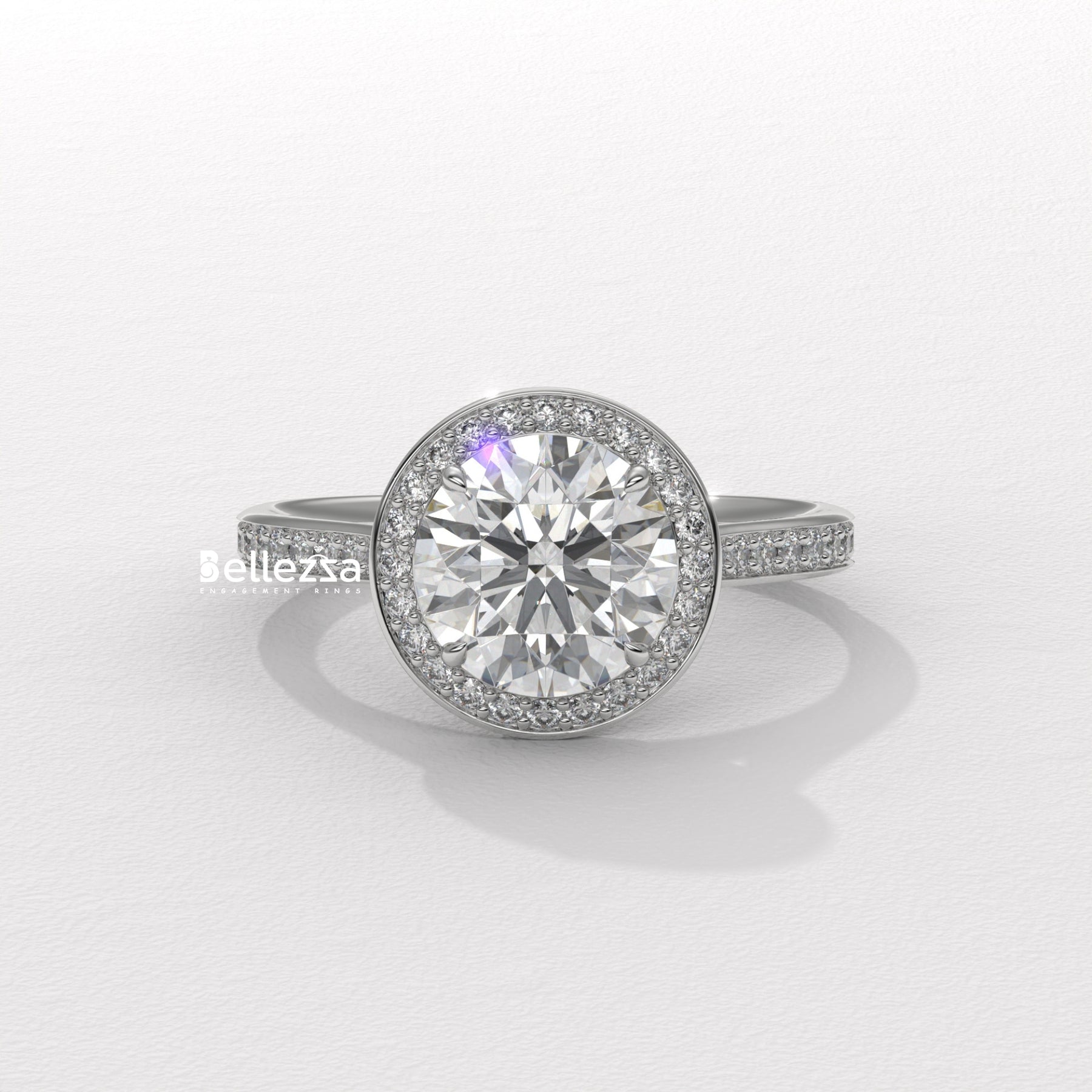 1.0-2.0CT Round Cut CVD Diamond Halo Pave Setting Engagement Ring