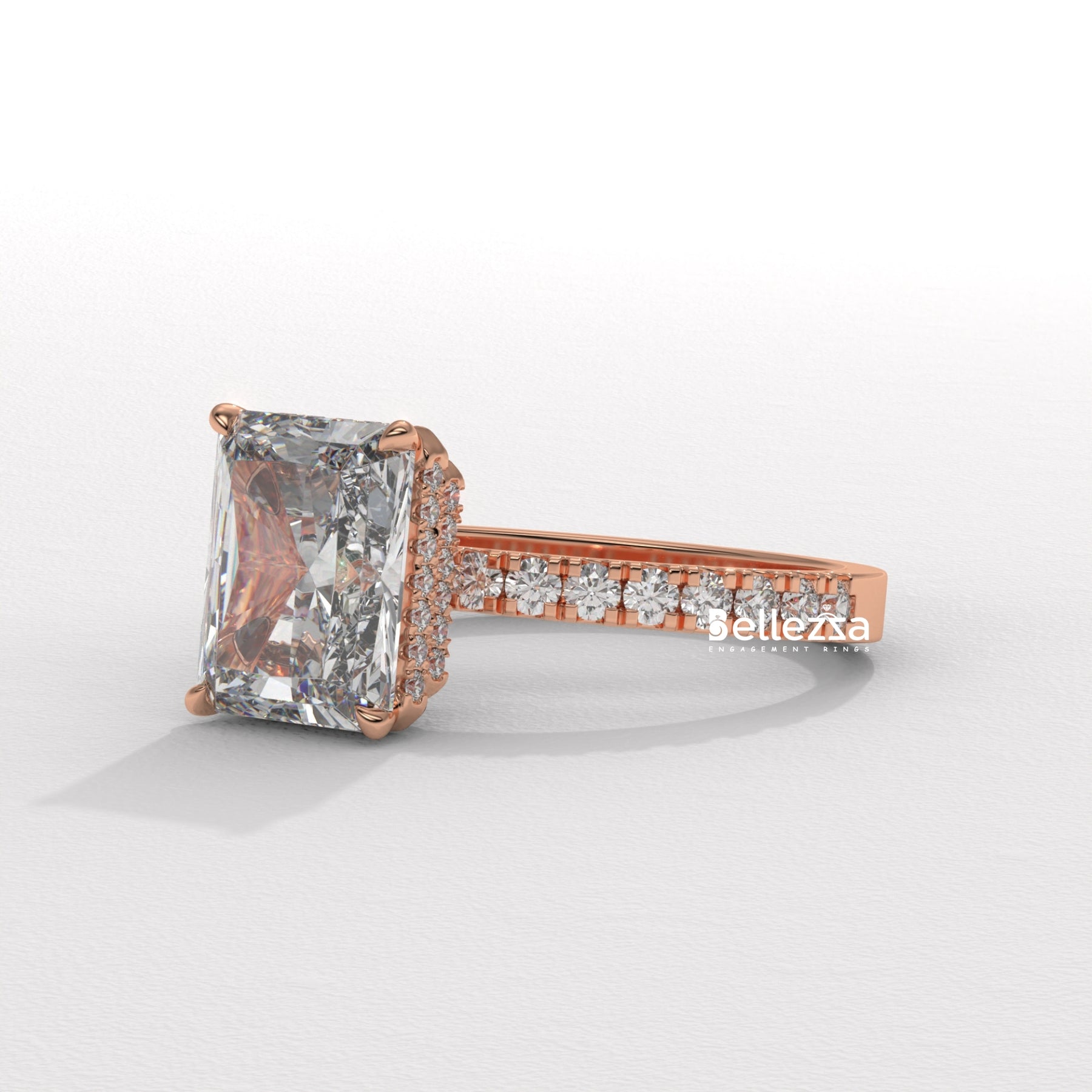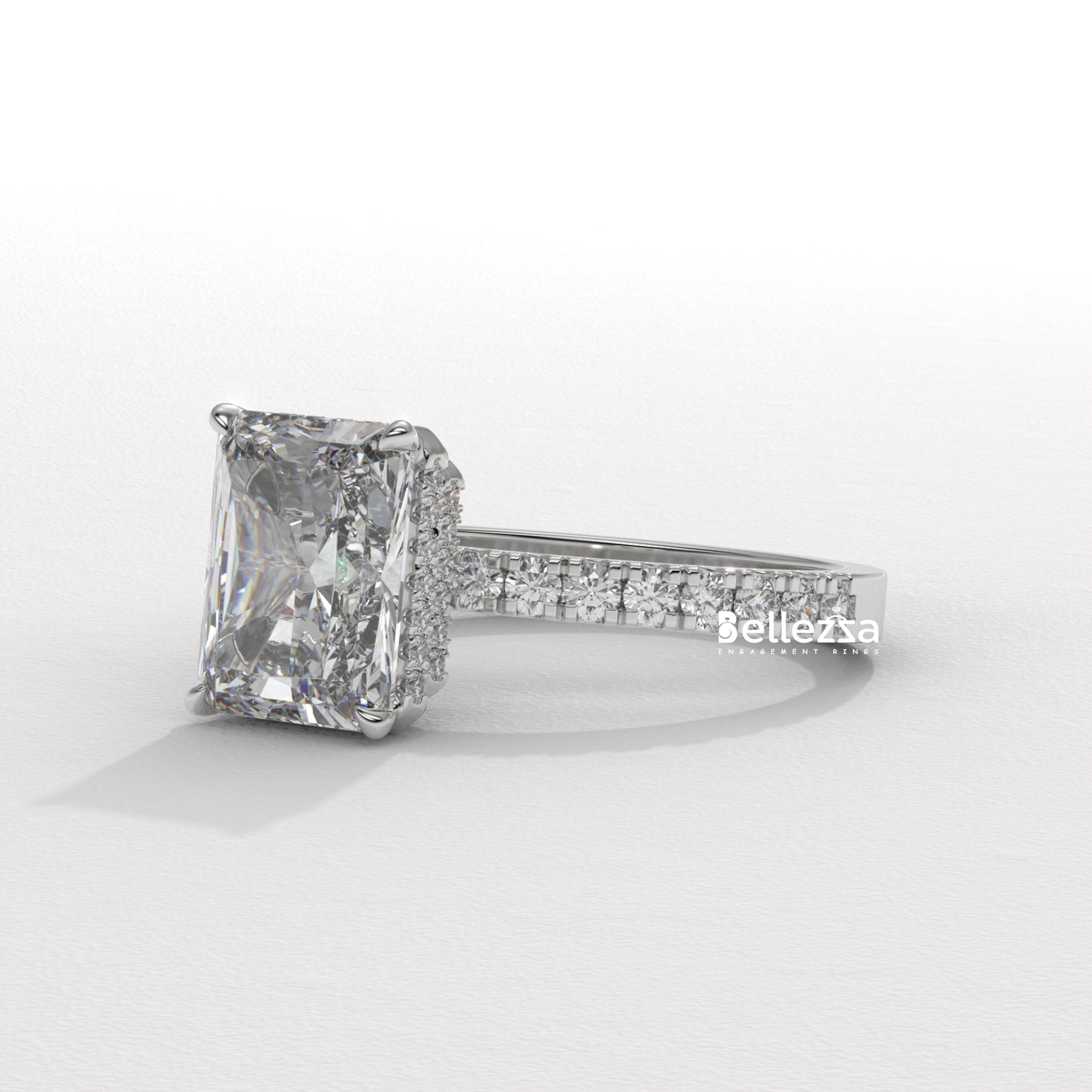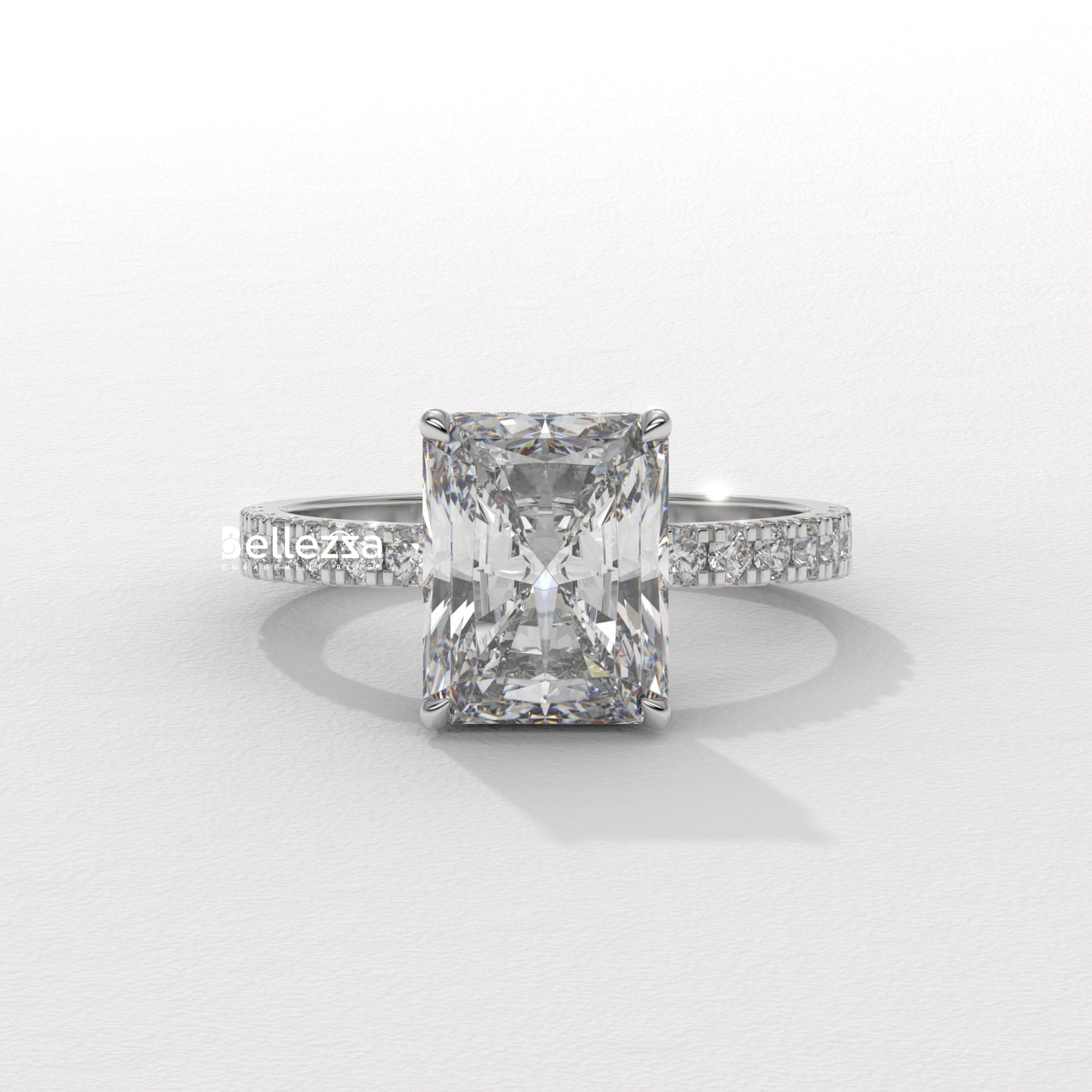 1.50-2.50CT Radiant Cut CVD Diamond Pave Setting Engagement Ring