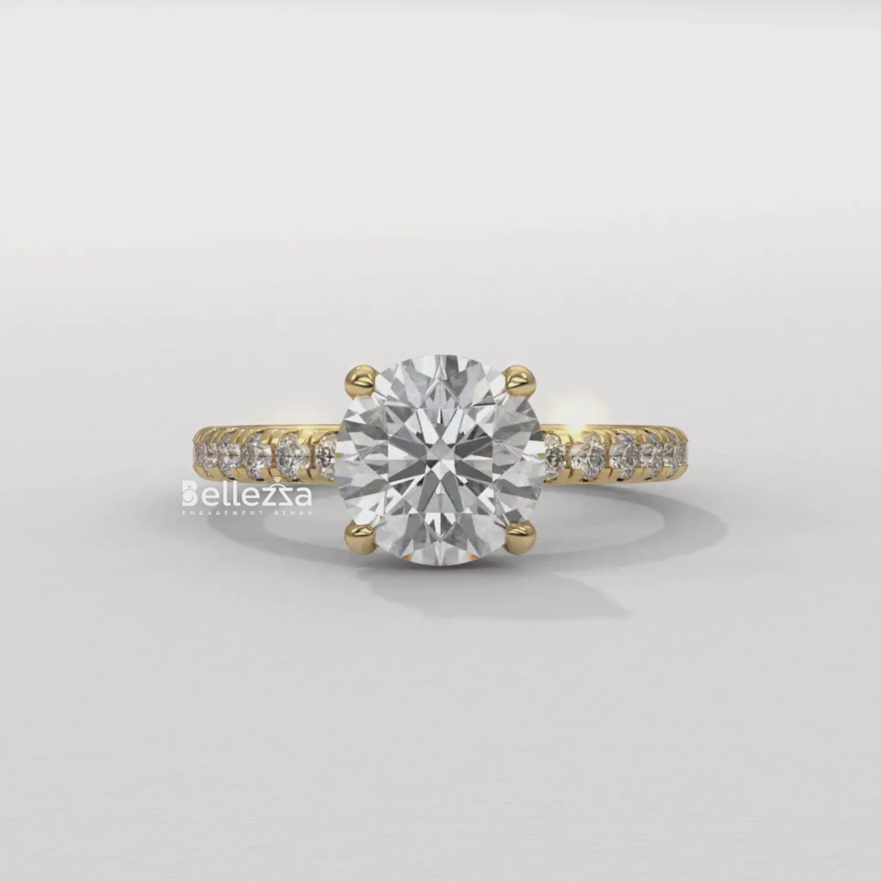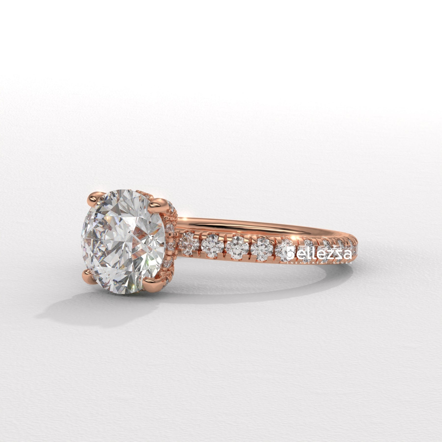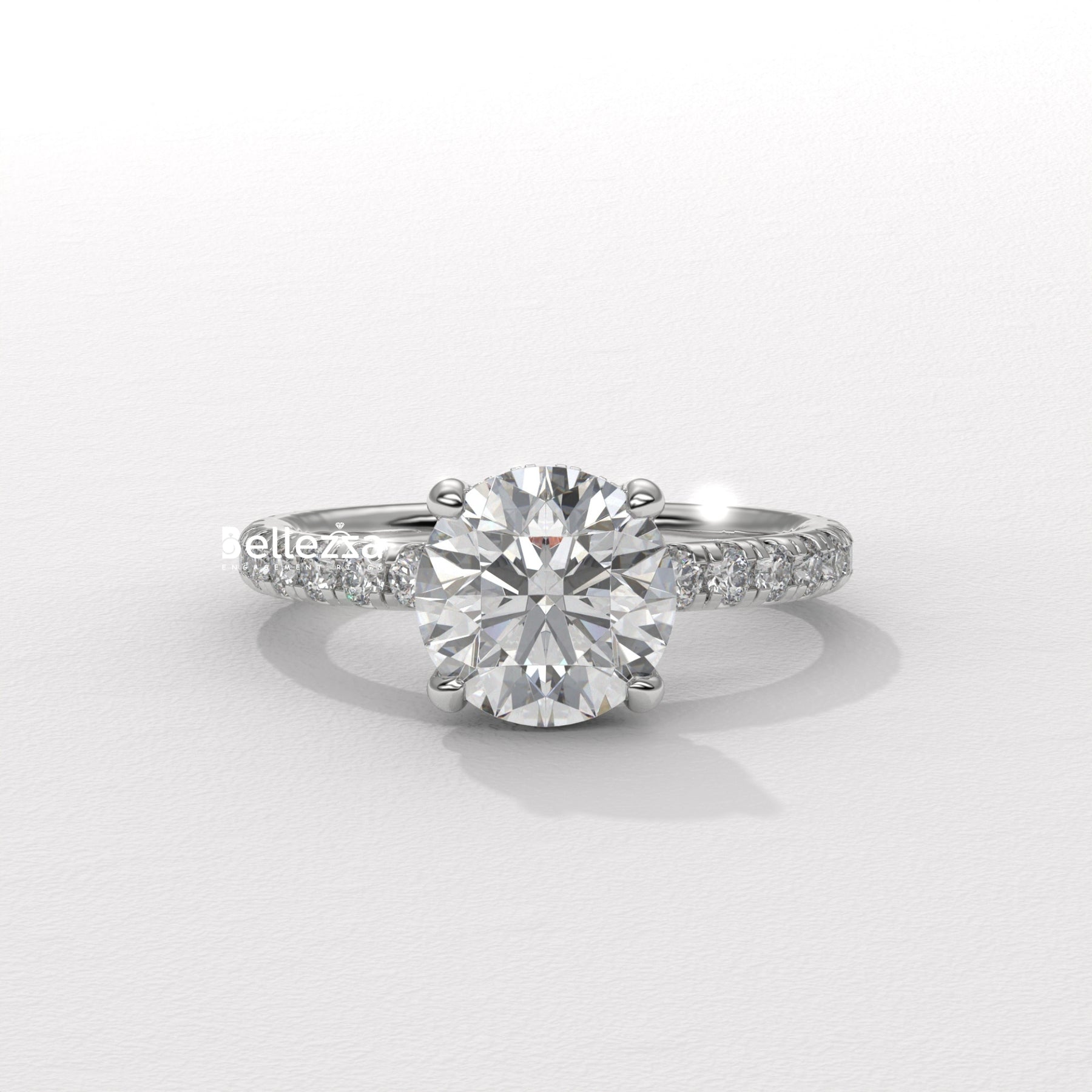 1.50-2.50CT Round Cut Lab Grown Diamond Pave Setting Engagement Ring