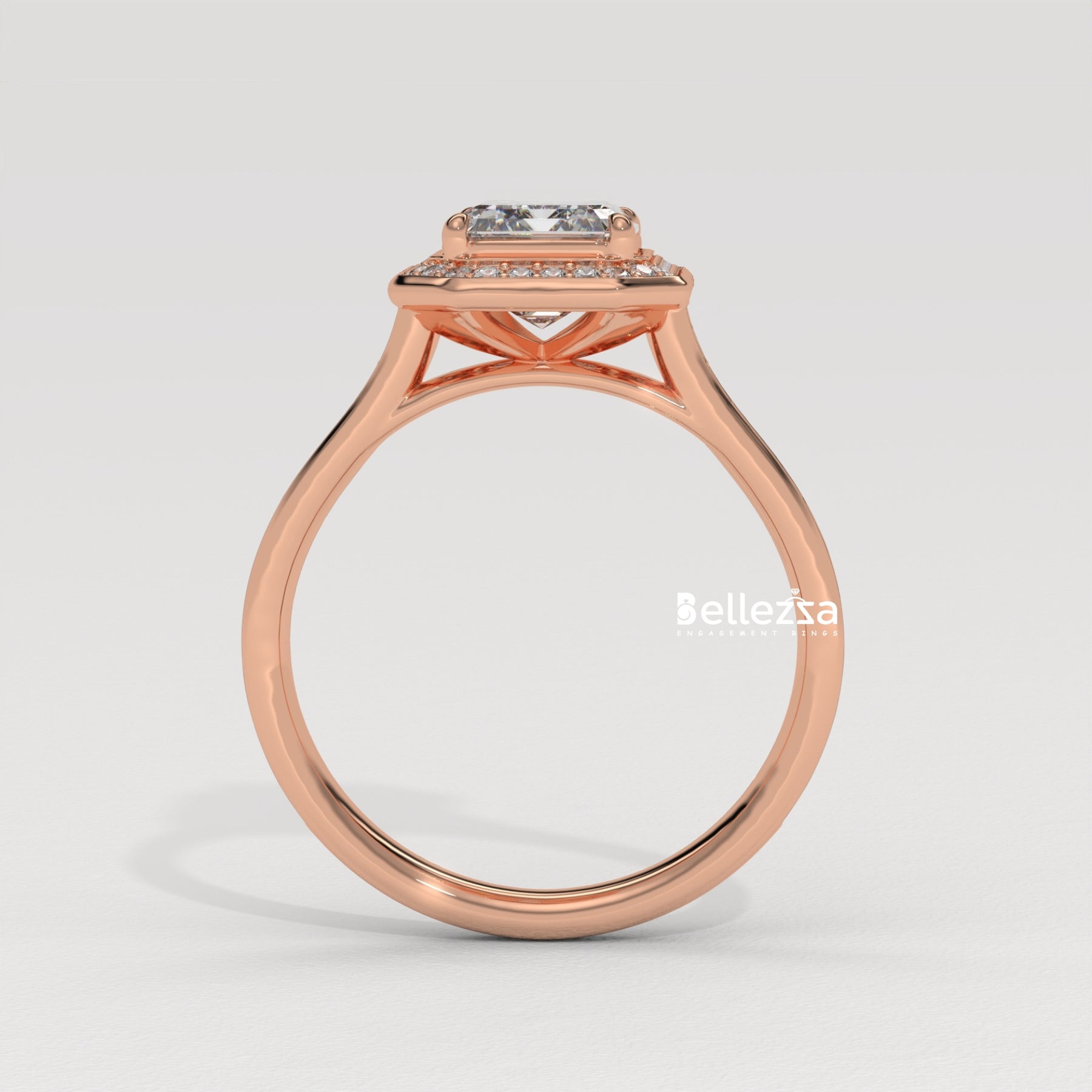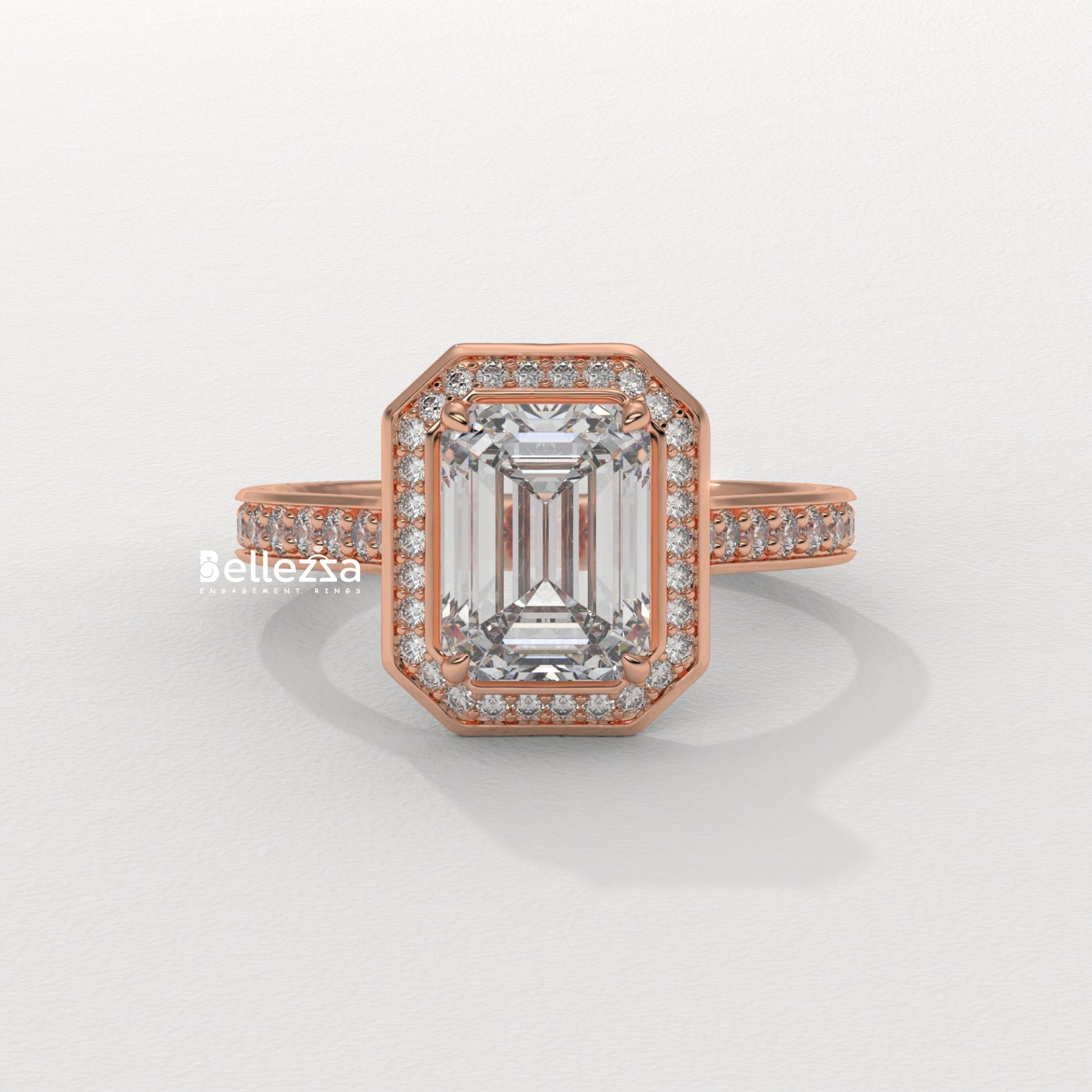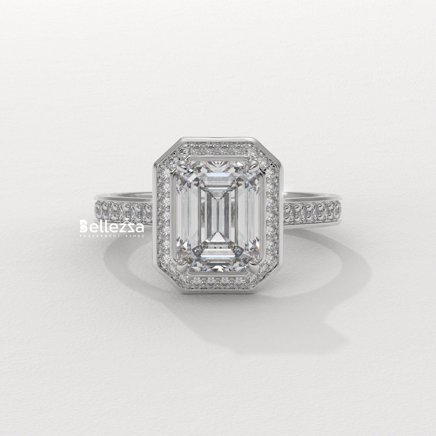 2.0-3.0CT Emerald Cut CVD Diamond Halo Pave Set Engagement Ring