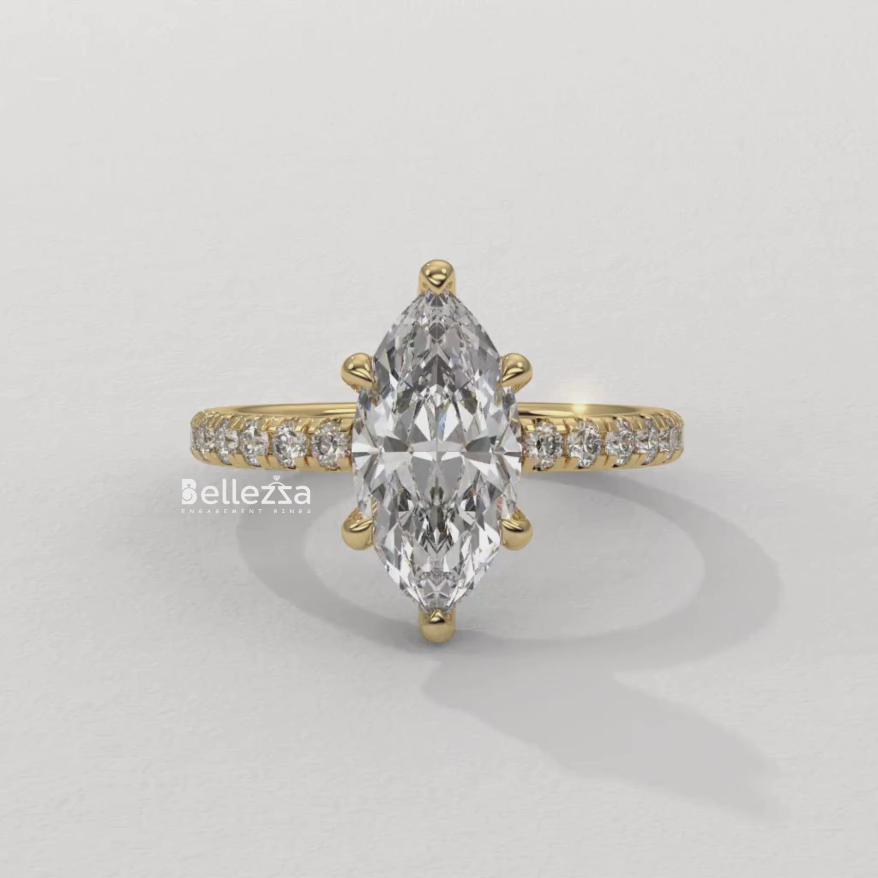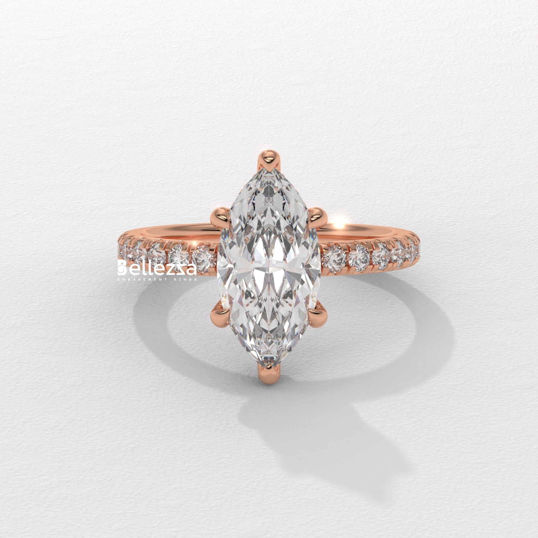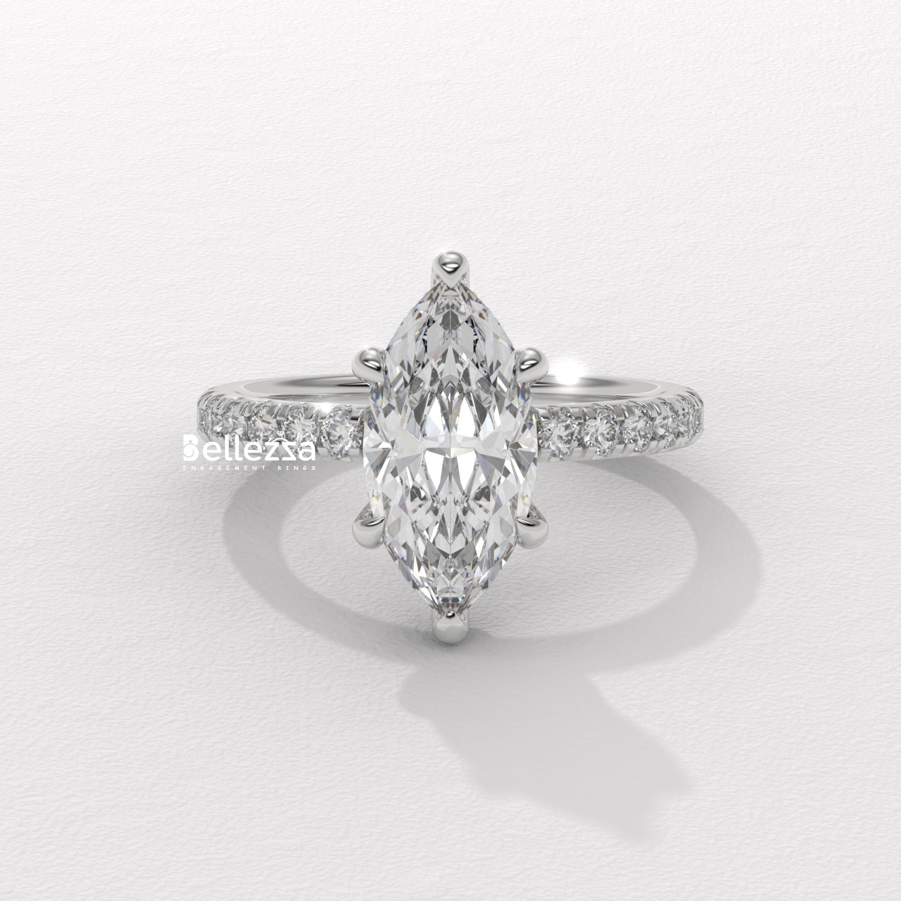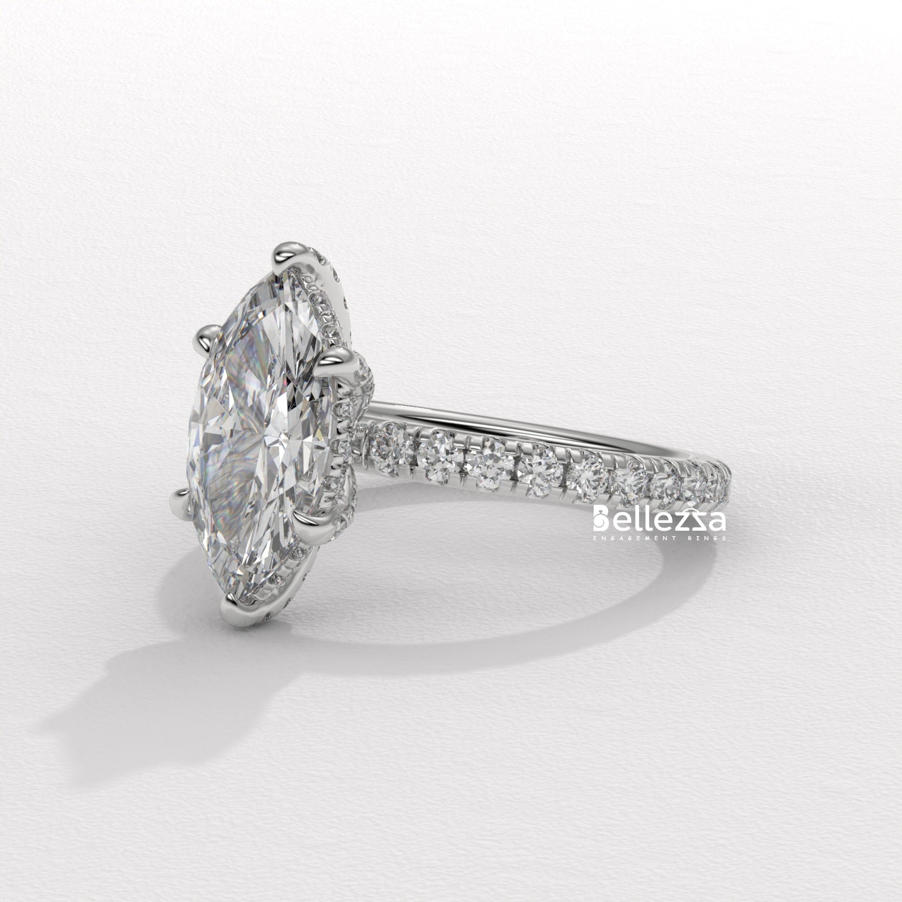 2.0-3.0CT Marquise Cut CVD Diamond Pave Setting Engagement Ring