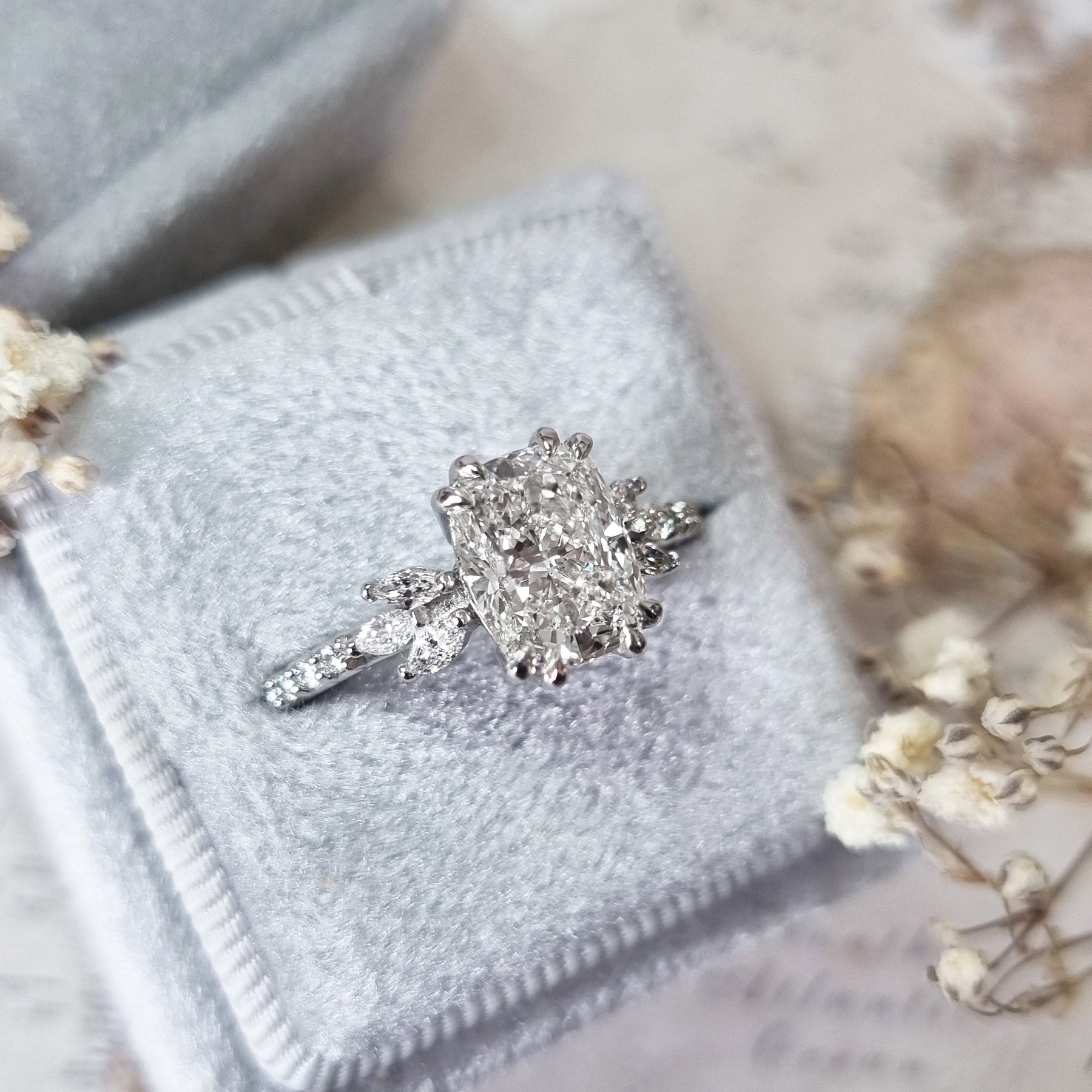 1.50-3.50 CT Cushion Cut Cluster Lab Grown Diamond Engagement Ring