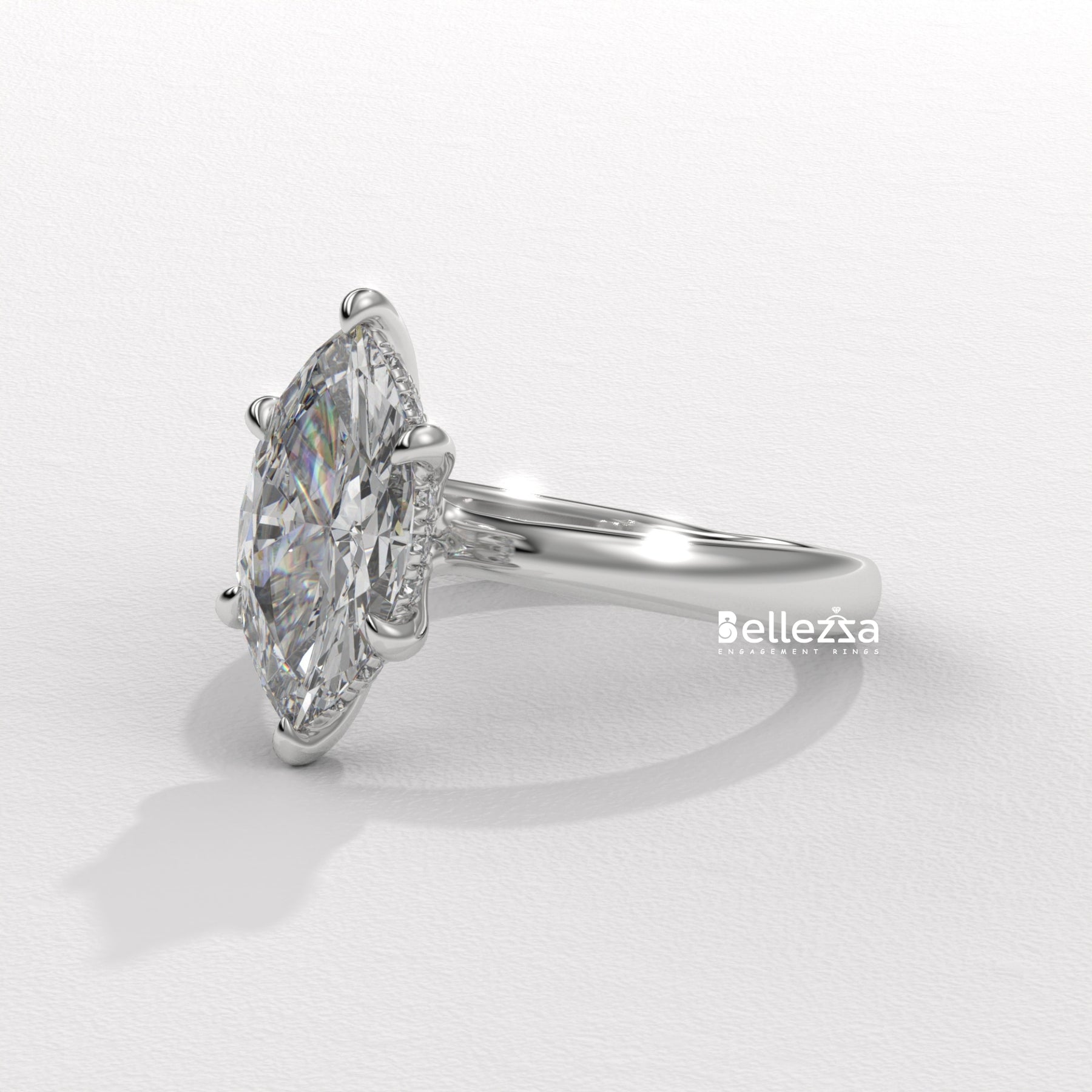 2.50-3.50CT Marquise Cut CVD Diamond Hidden Halo Engagement Ring