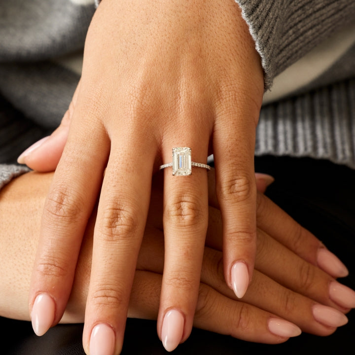 ✦ The Ring Shown in the Picture Holds a Beautiful 2.50 CT-4.50 CT Emerald Cut CVD Lab Grown Diamond.