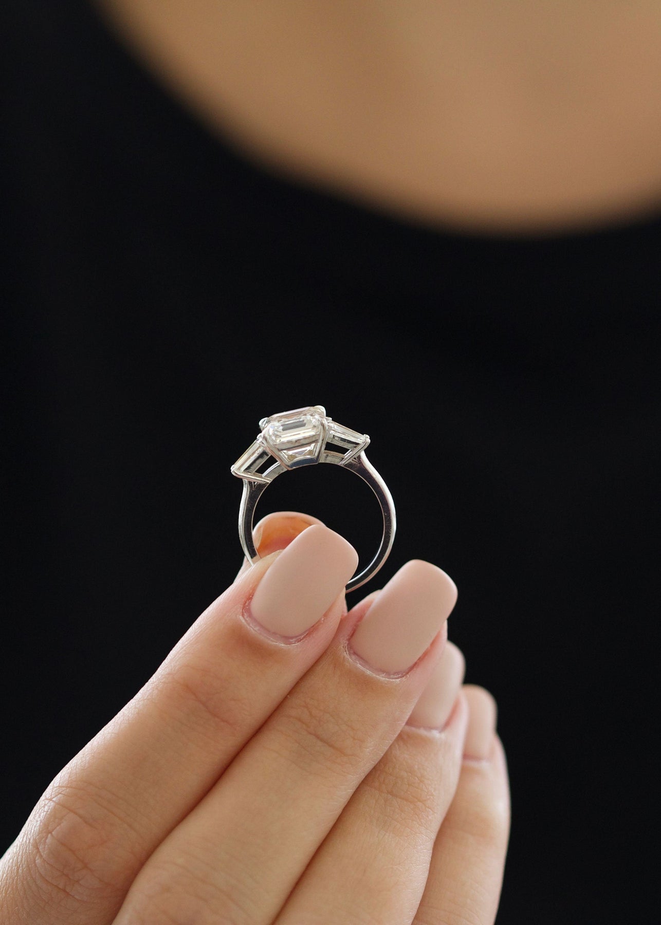 1.0 - 3.01 CT Asscher Diamond 3 Stones Engagement Ring