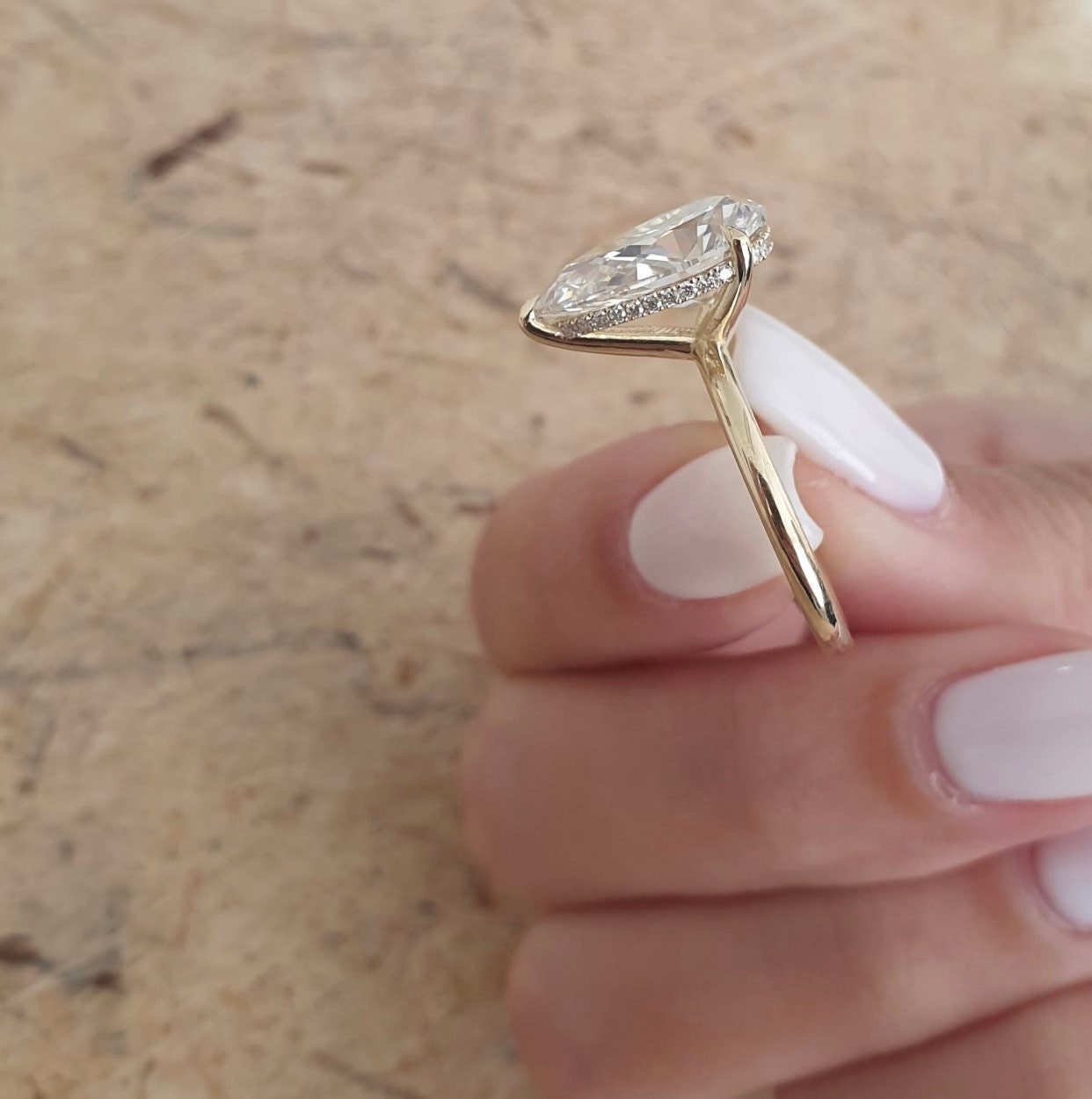 2.50 -4.60 CT Pear Diamond Engagement Ring With Hidden Halo Setting