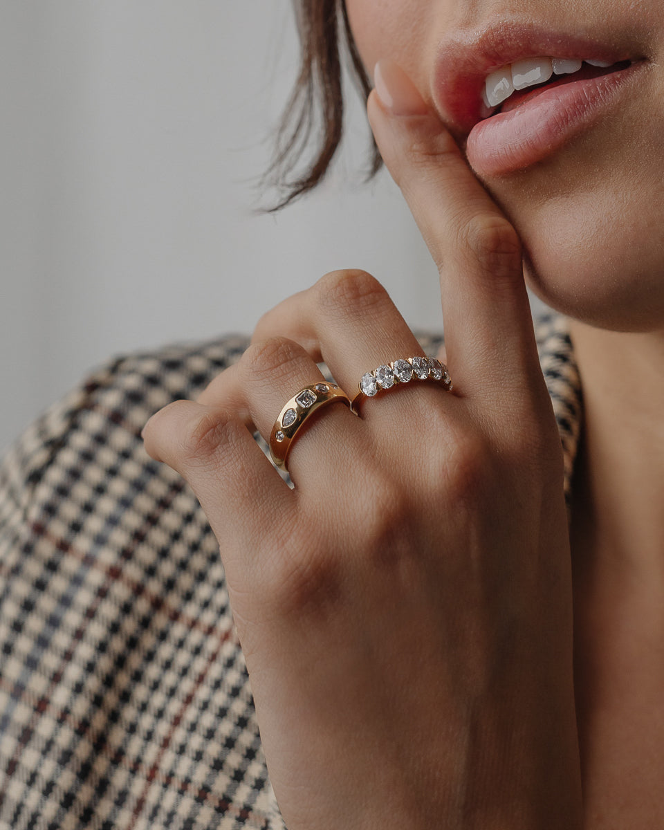 0.44 TCW Round, Pear & Asscher EF- VVS Diamond Bezel Wedding Band