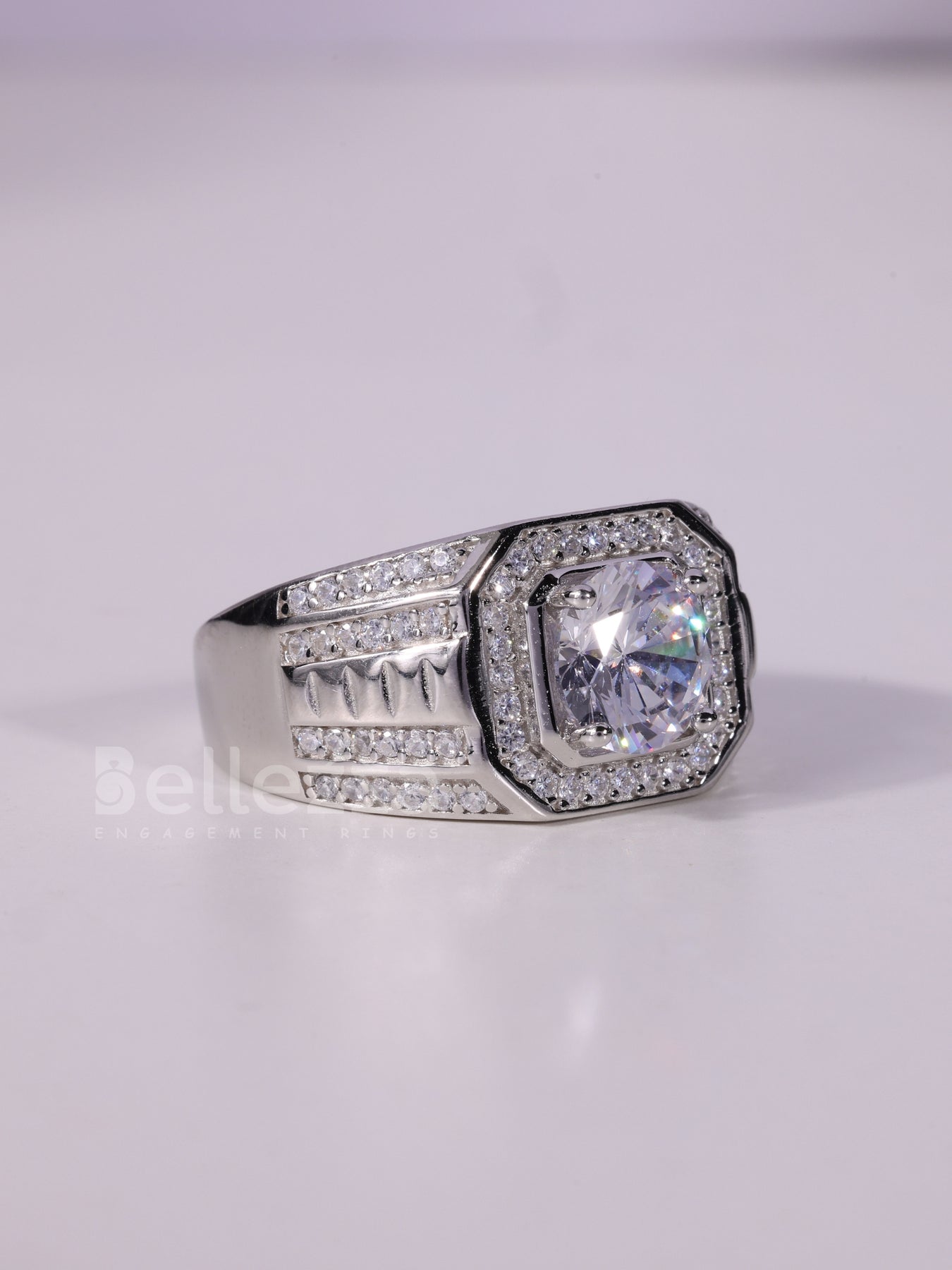 1.0CT Round Cut Halo Diamond Moissanite Men's Wedding Ring