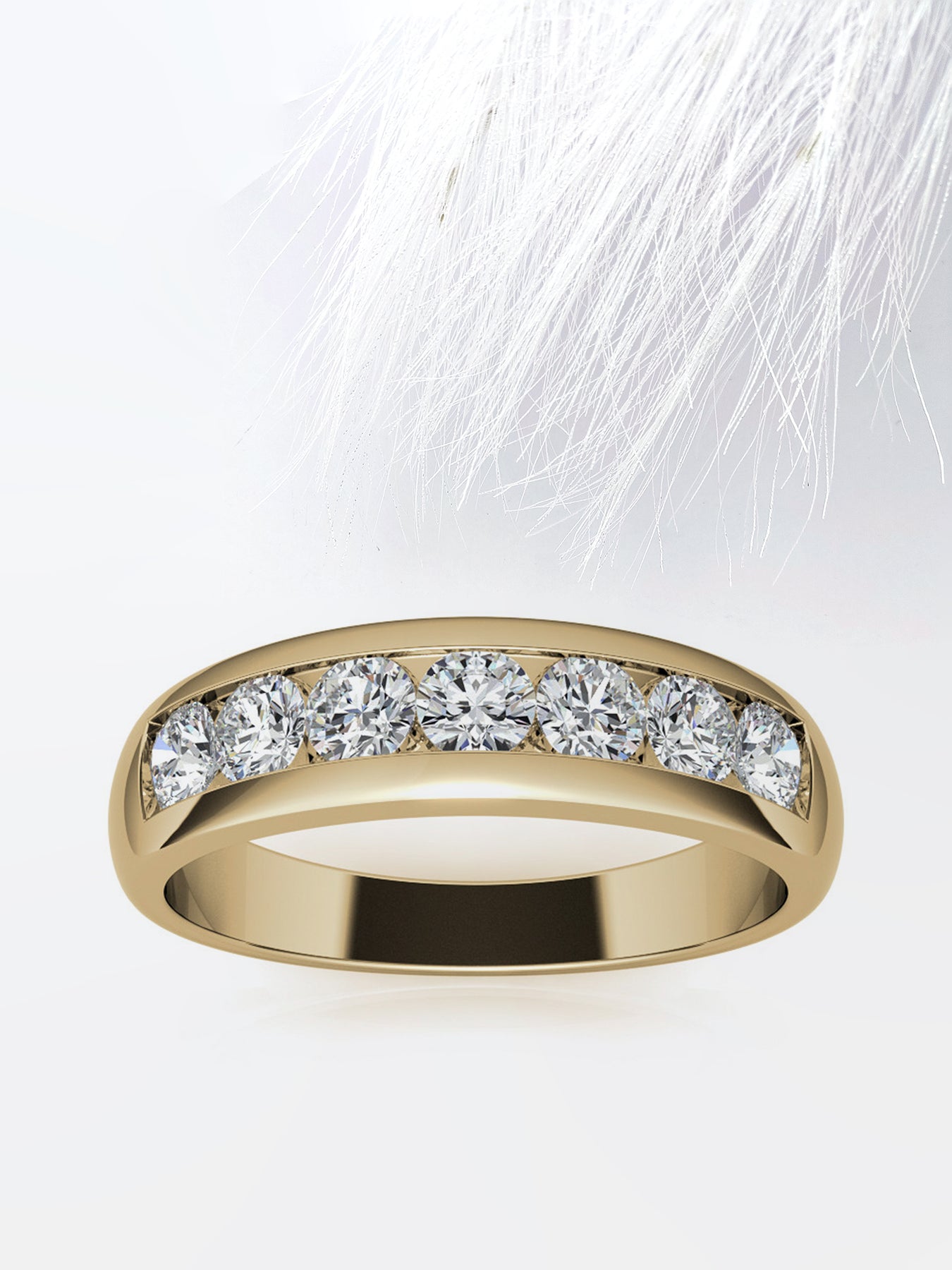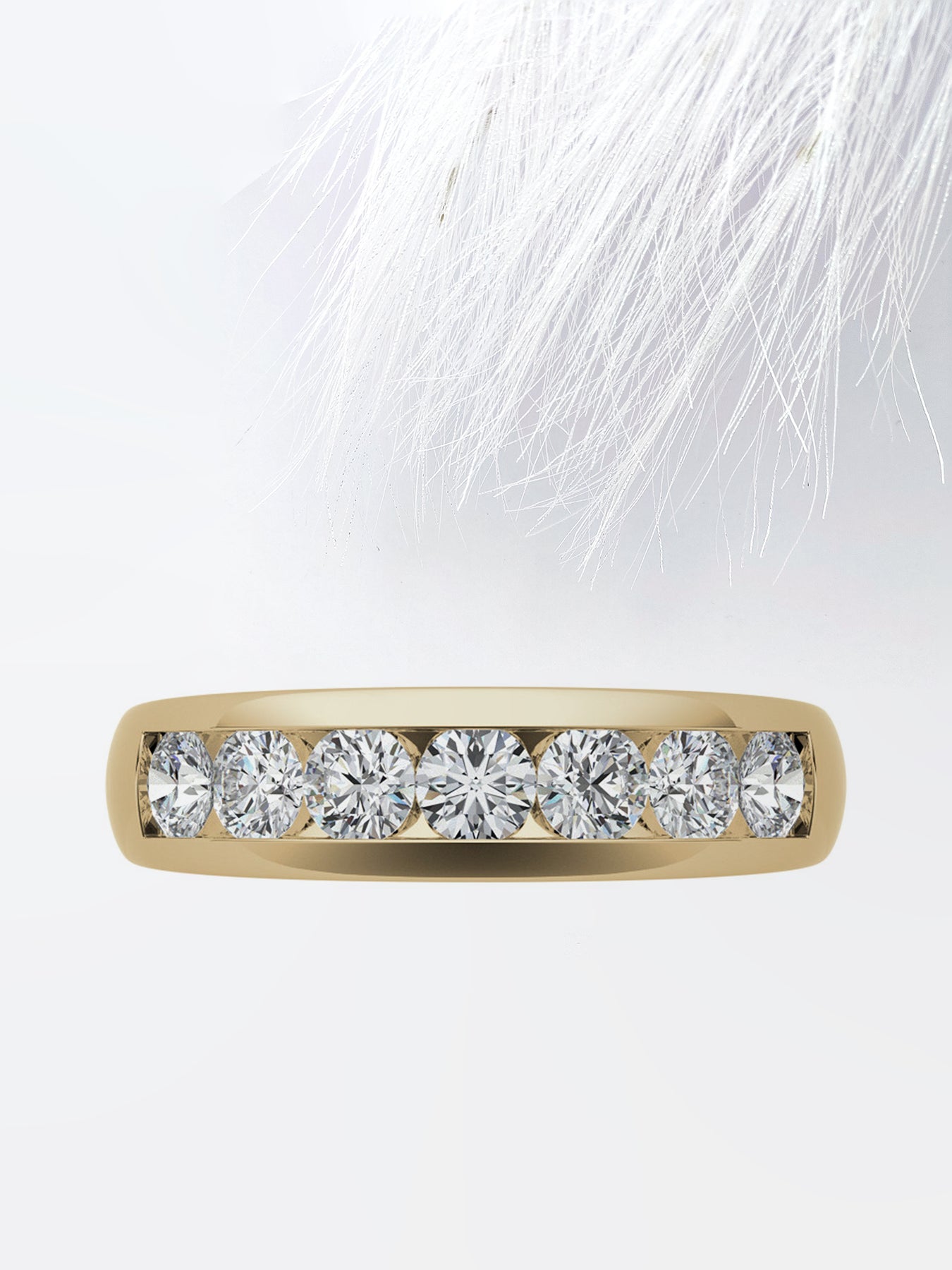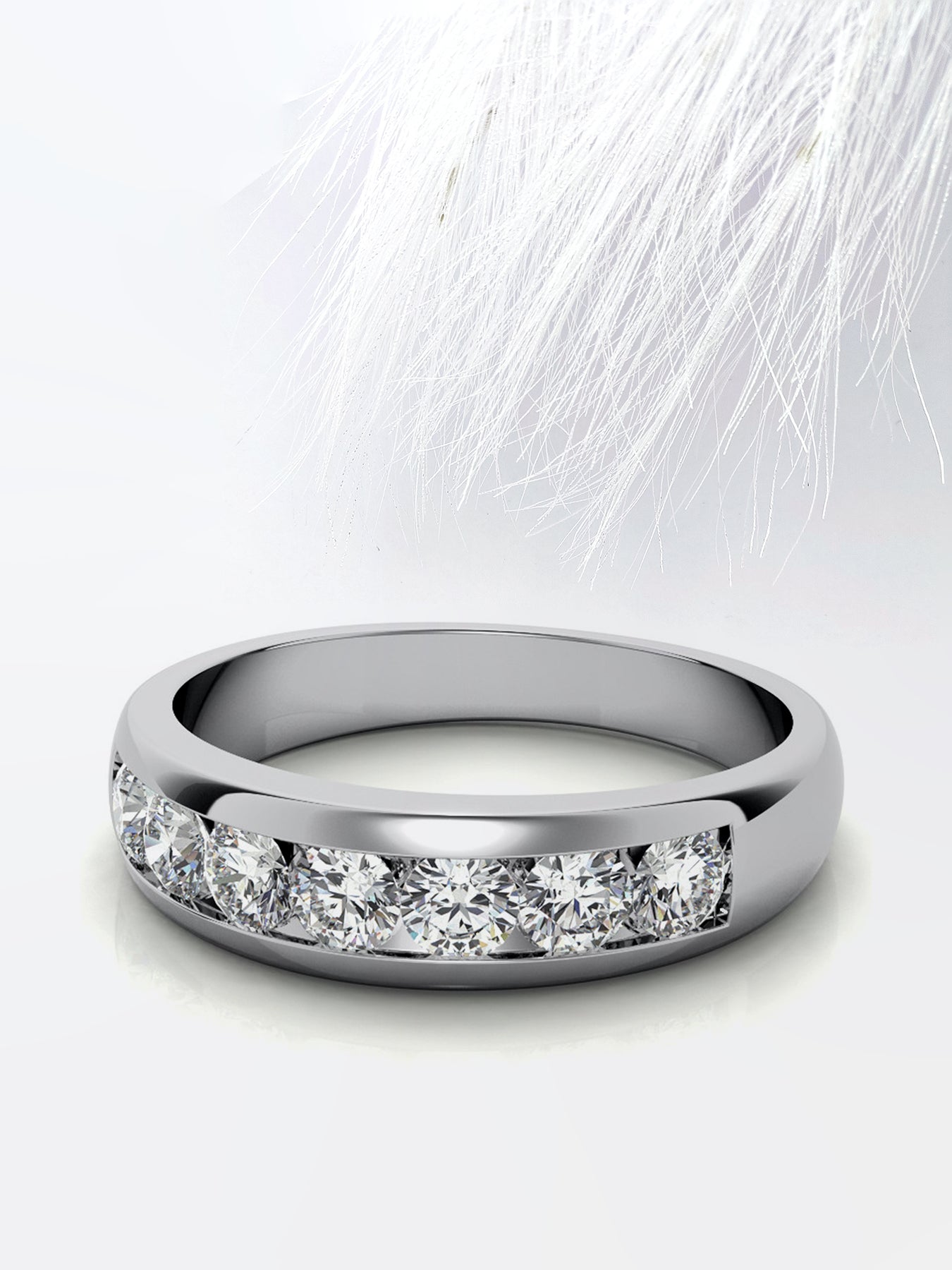 Introducing our Round Cut Channel Moissanite Men's Diamond Wedding Band, a dazzling symbol of eternal love and commitment. Crafted with precision and care, this exquisite wedding band features brilliant round-cut Moissanite stones meticulously set within a sleek channel design. The Moissanite stones, renowned for their exceptional brilliance and durability, radiate with captivating sparkle, adding a touch of elegance to any ensemble. Whether worn as a symbol of devotion or as a stylish accessory, this wedding band exudes timeless charm and sophistication, perfect for commemorating the bond shared between two hearts. Elevate your special day with this extraordinary piece that captures the essence of romance and enduring beauty.